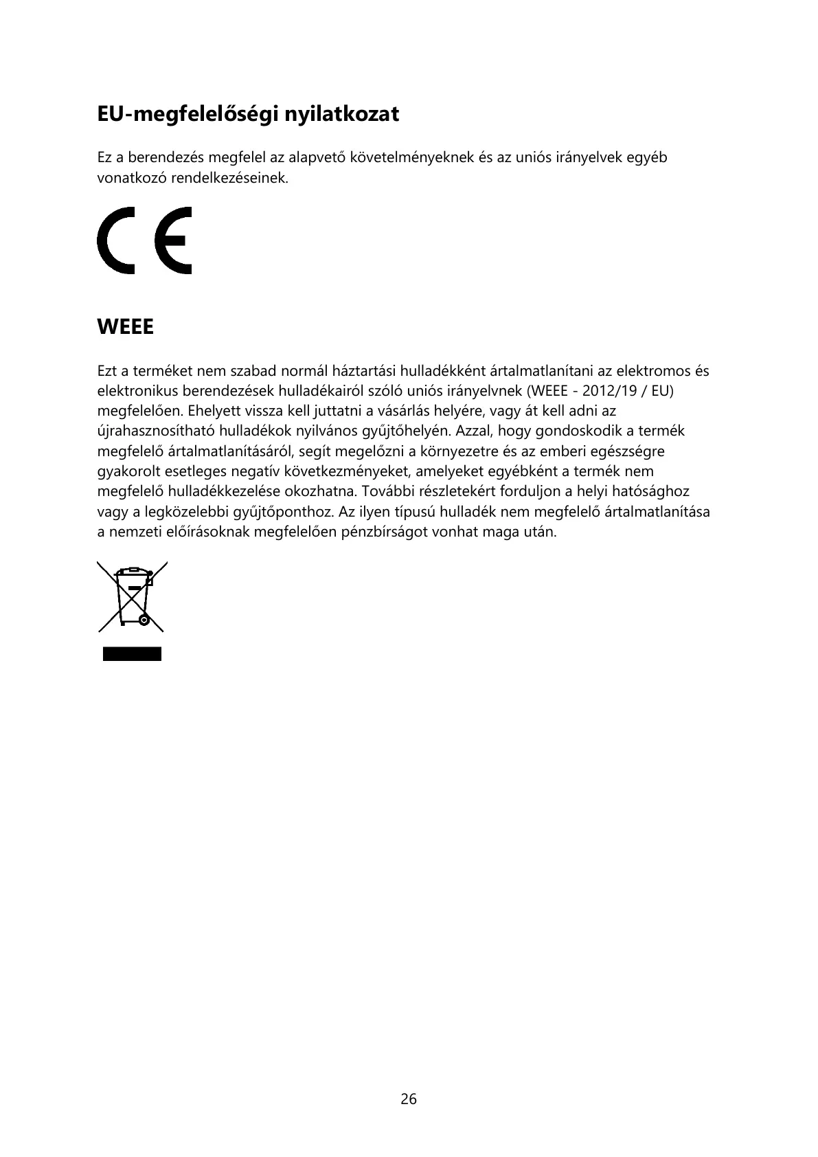 Ezt a terméket nem szabad normál háztartási hulladékként ártalmatlanítani az elektromos és