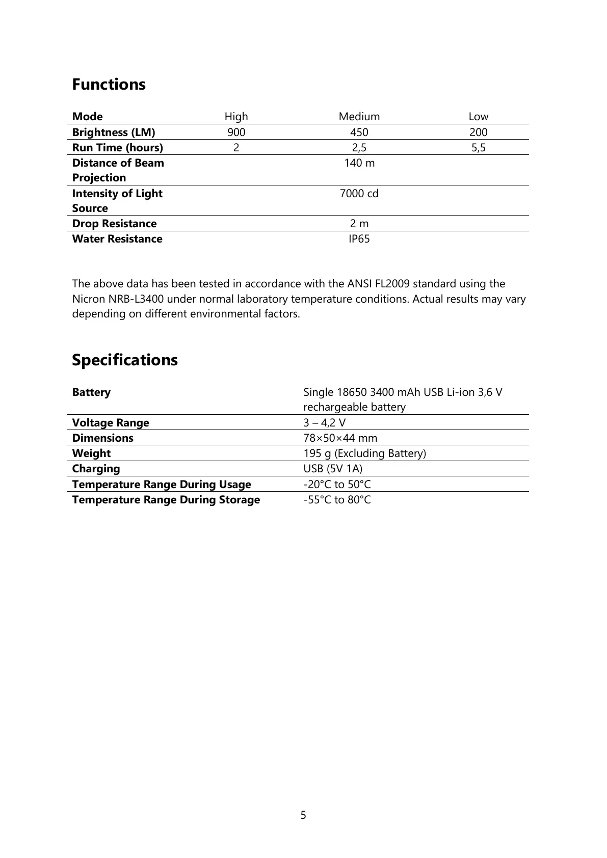 Nicron NRB-L3400 under normal laboratory temperature conditions. Actual results may vary