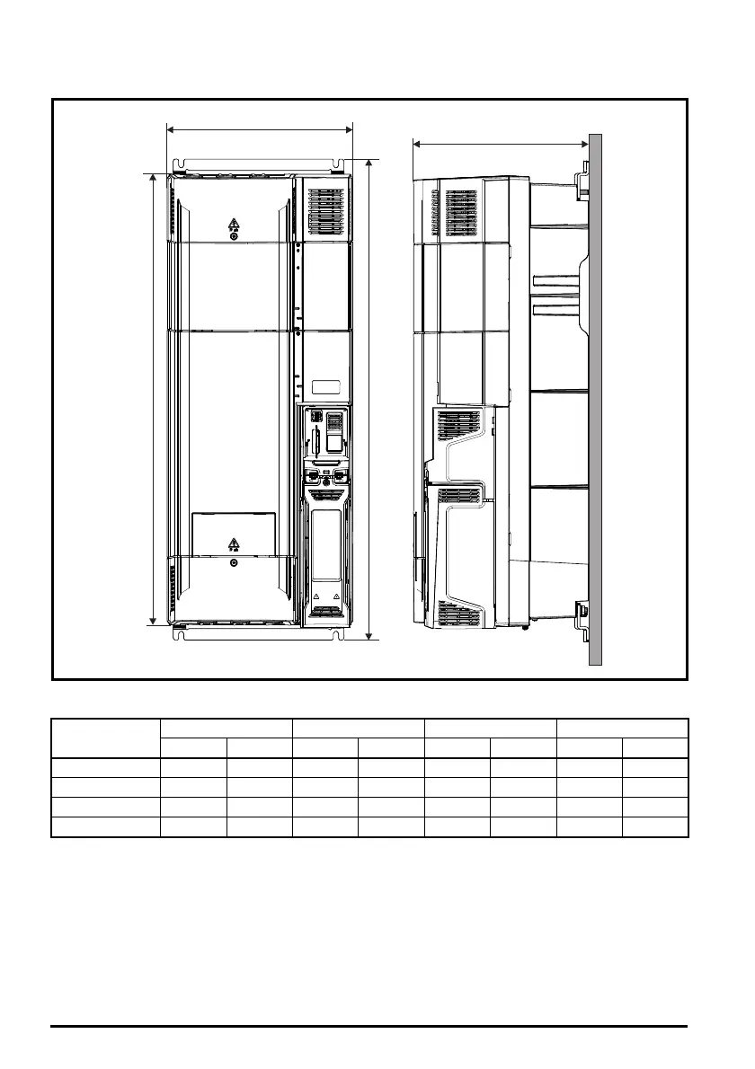 Figure 3-6 Drive dimensions (Unidrive M700 size 8 shown)