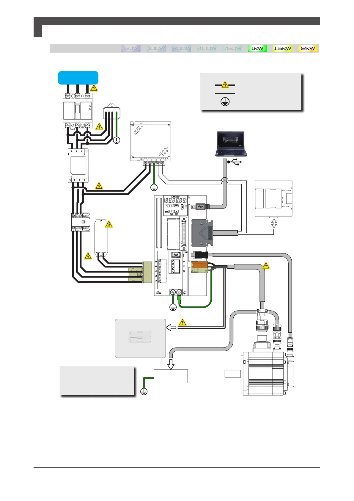 • The screen (shield) of the motor cable must be fixed in direct contact with the same plate. The contact must be by direct contact, no