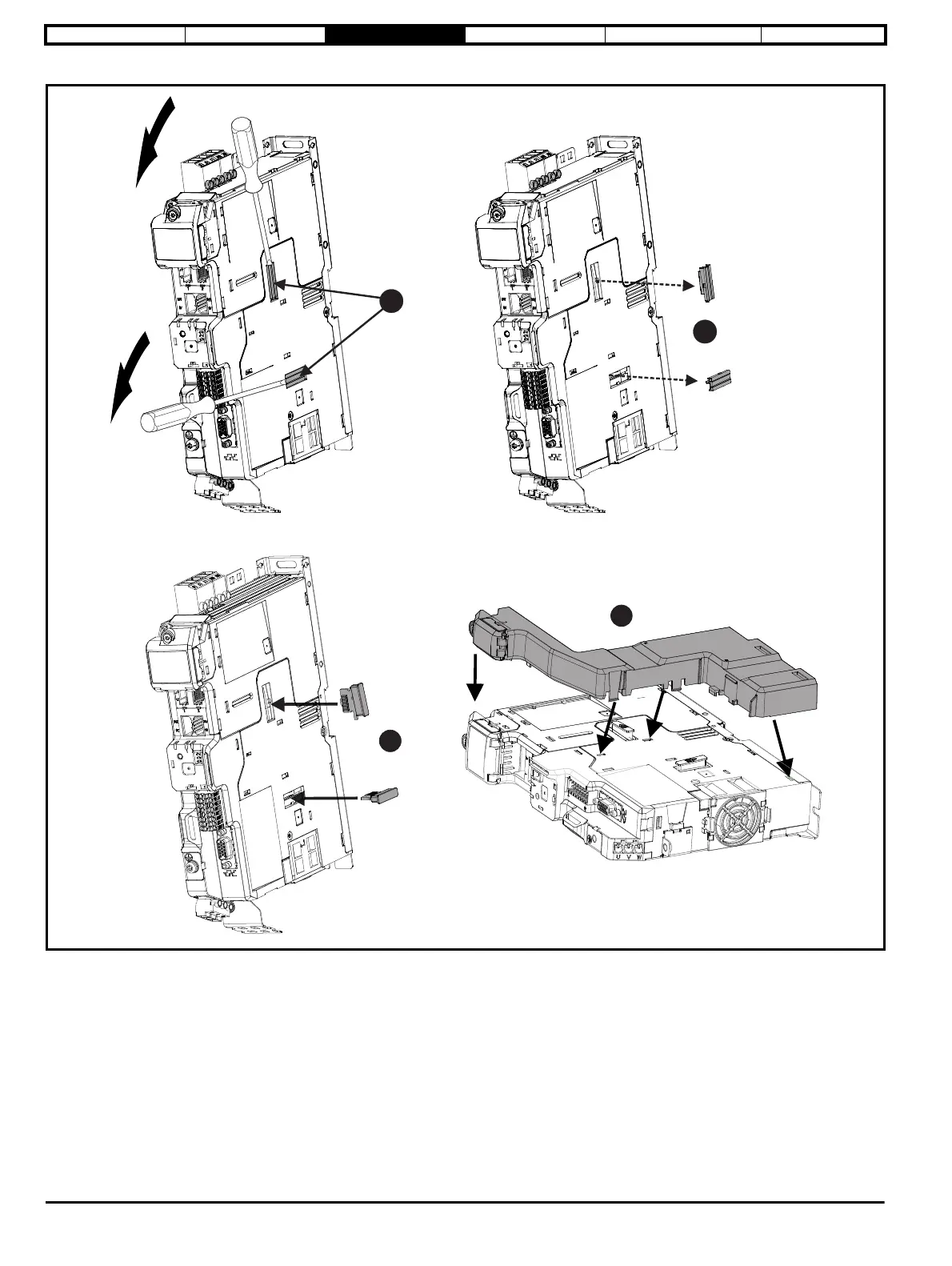1a. Insert a flat head terminal screwdriver underneath the option module slot covers and prise both out in the direction shown as highlighted (1b).