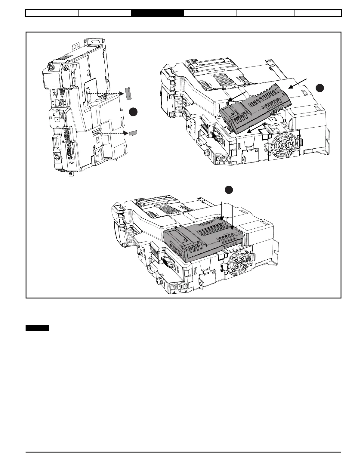 Once fitted, the SI option module remains at an angle with respect to the drive.
