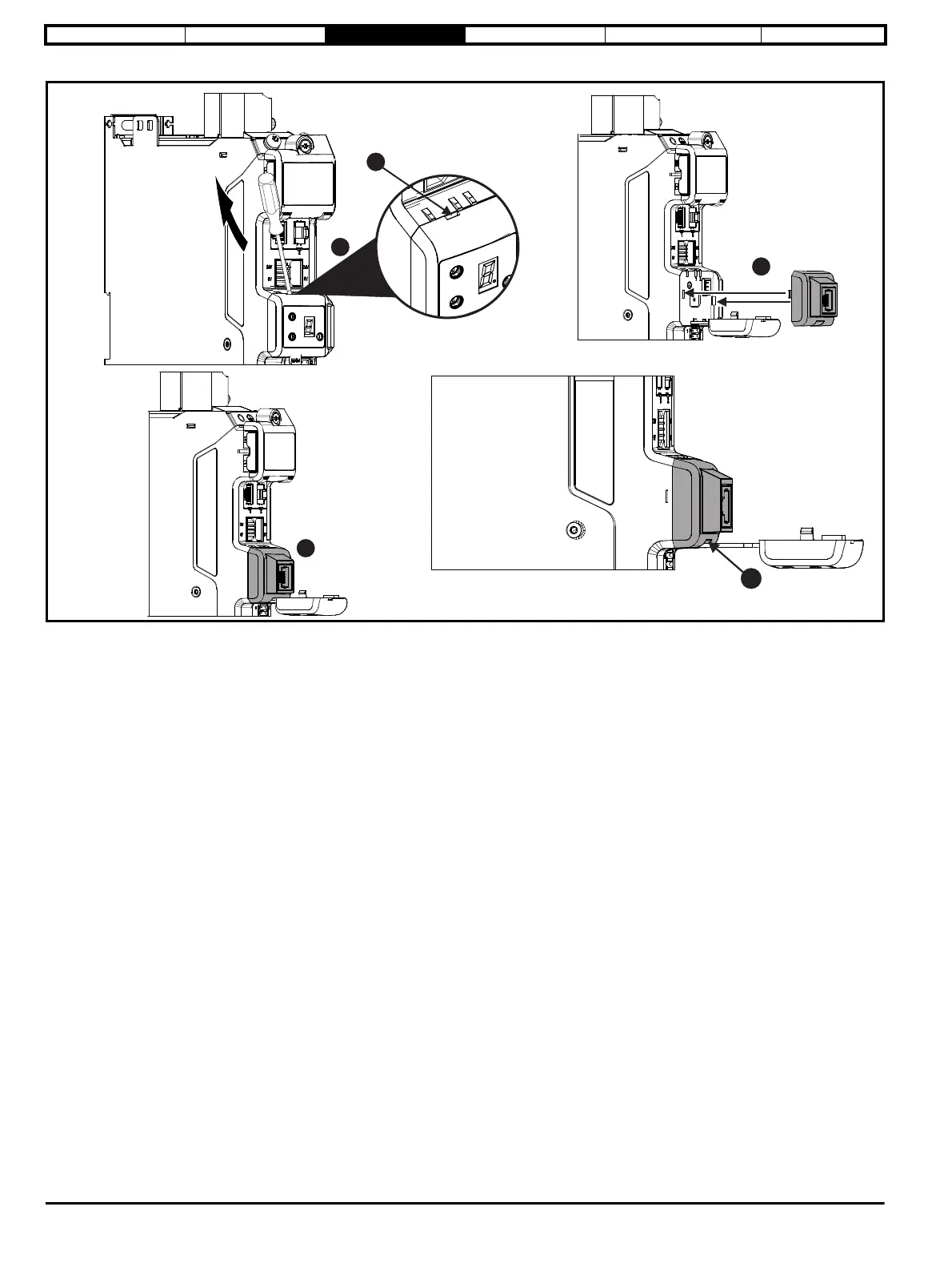 1. Unclip and pull the display away from the front cover. The tether keeps the display associated to the drive and should not be removed. A small terminal