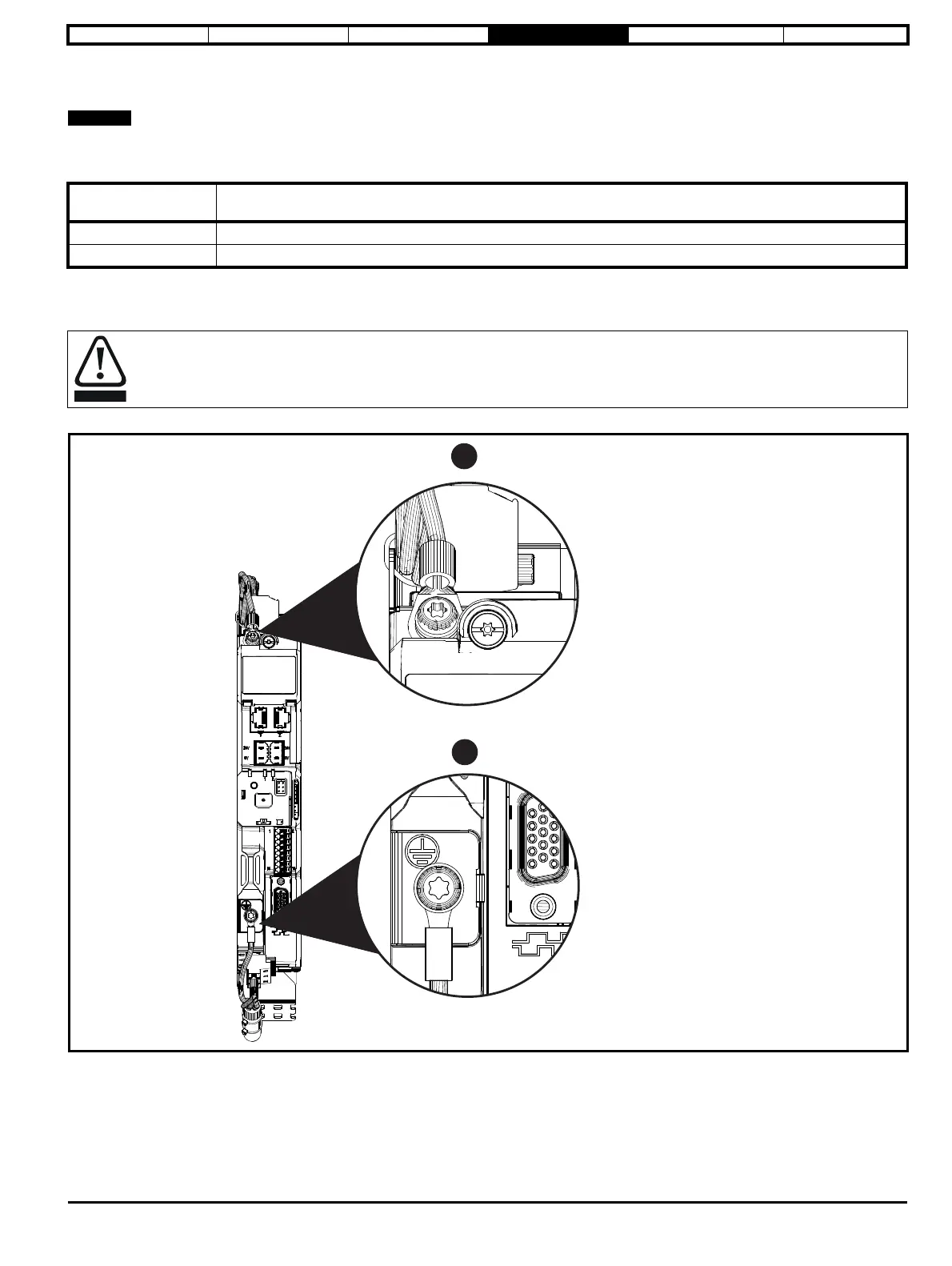 The supply and motor ground connections are made using the M4 threaded holes in the metal side plate of the drive. Connections are located at the