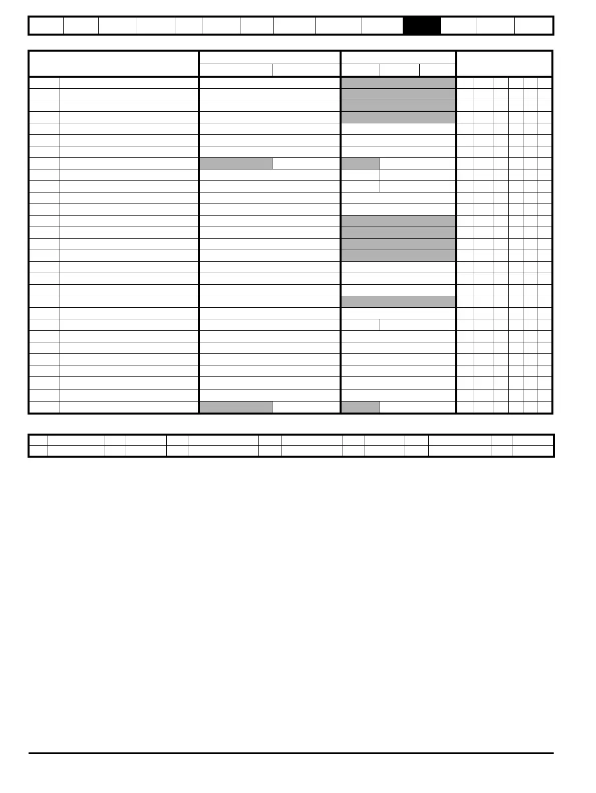 ND No default value NC Not copied PT Protected parameter RA Rating dependent US User save PS Power-down save DE Destination
