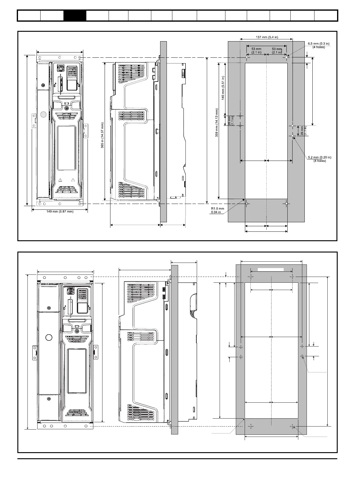 Nidec H300 - Through Panel Mounting the Size 4 Drive; Through Panel Mounting the Size 5 Drive