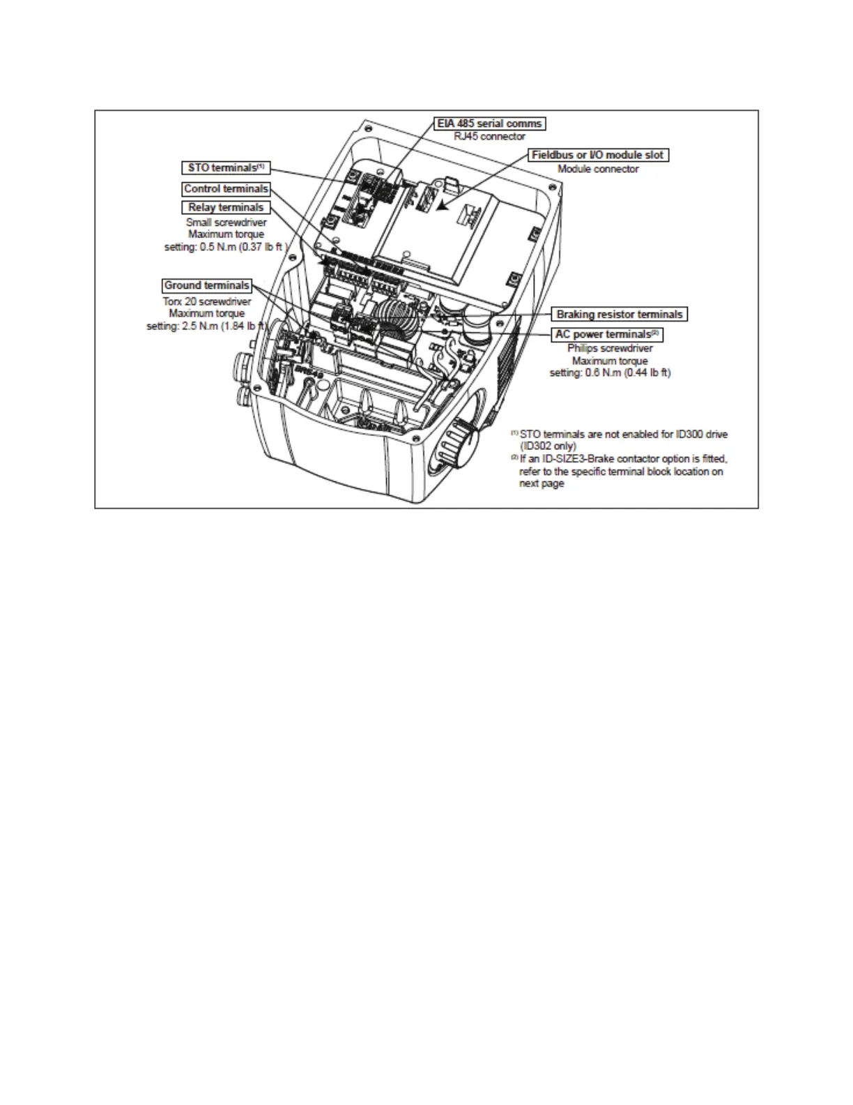 Nidec ID300 - Connections: Terminal Layouts; Terminal Block Identification