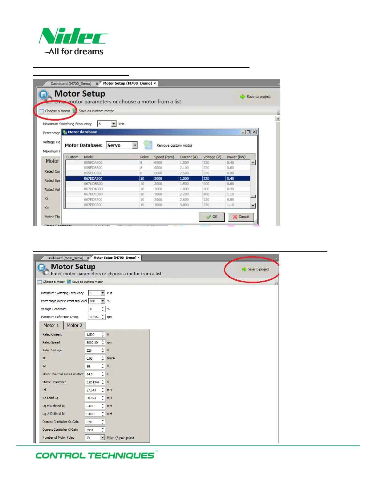 Select ‘Choose a motor’, scroll down the list and select 067EDA300