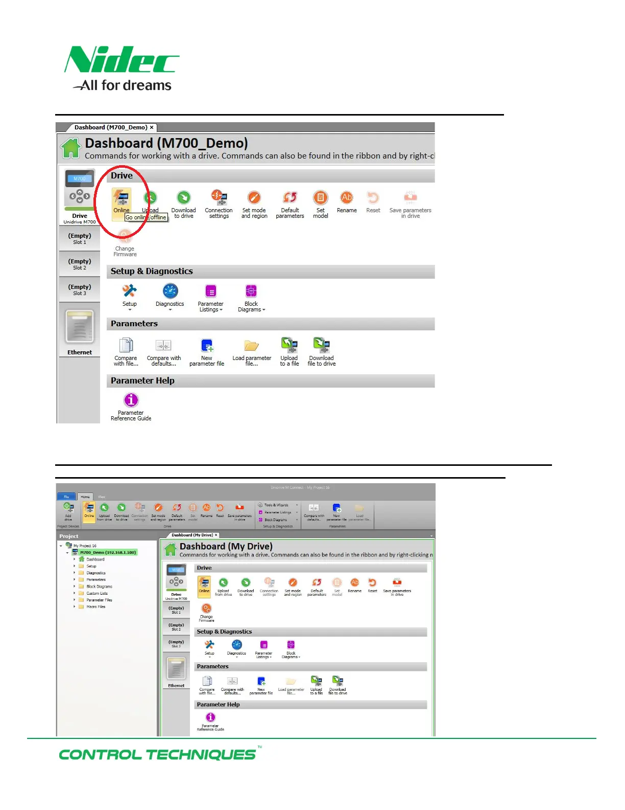 Once successfully Online with the drive the drive name, IP address, and the Drive Dashboard
