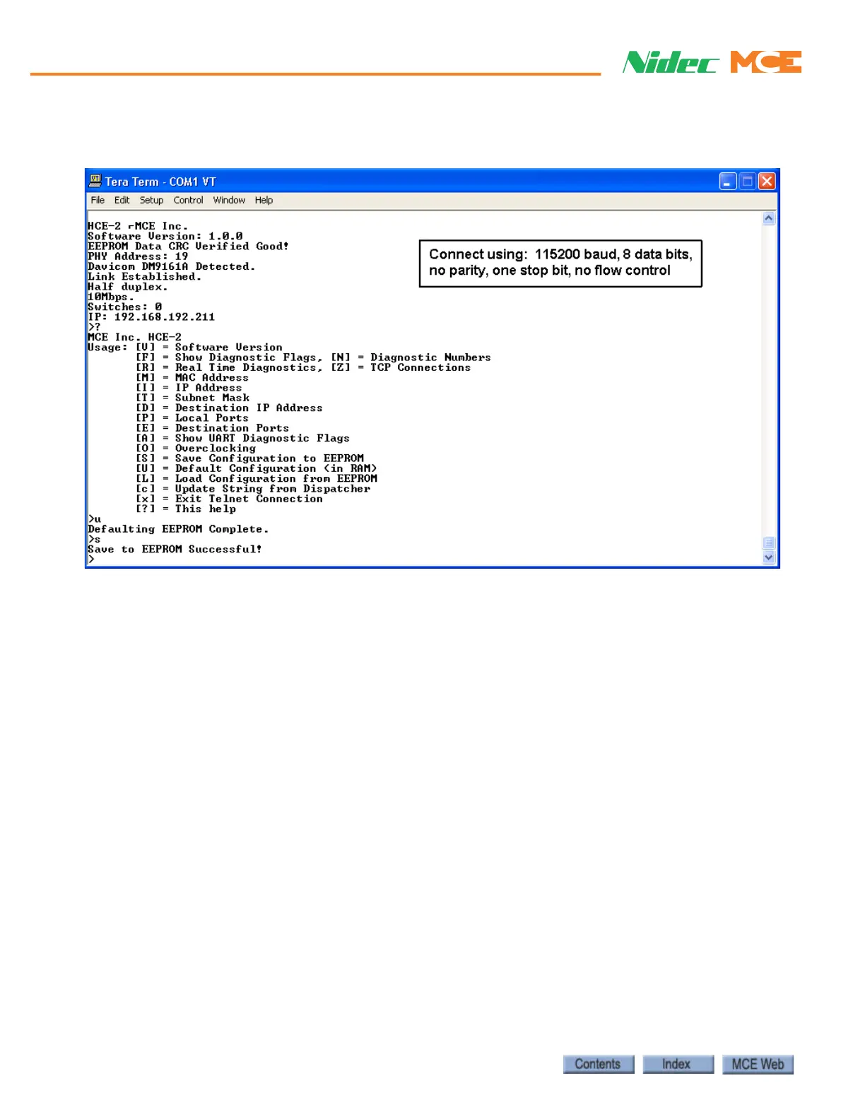 or default internal settings on SC-HCE boards. Contact MCE for information.