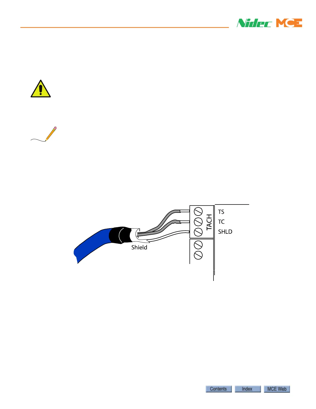 3. DO NOT connect the cable shield at the tachometer end of the cable. Insulate any part of