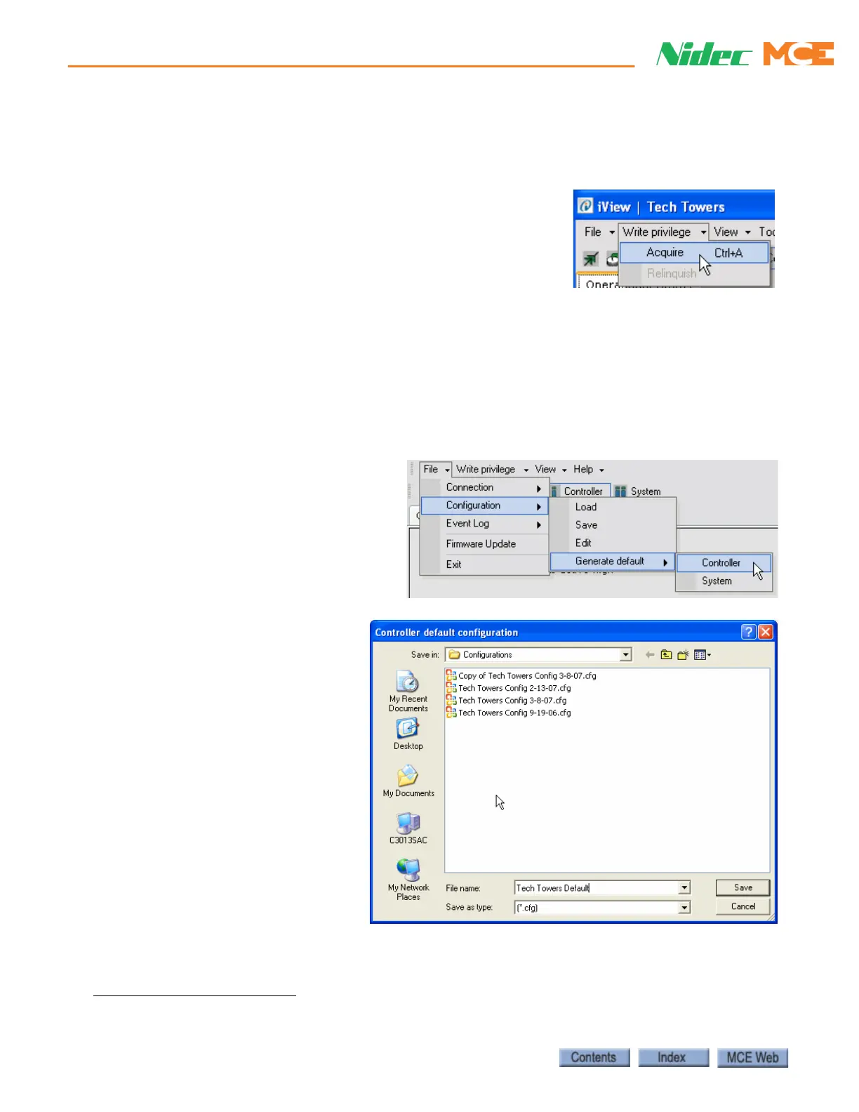 The Controller and/or System default parameter settings can be saved to a configuration (.cfg)