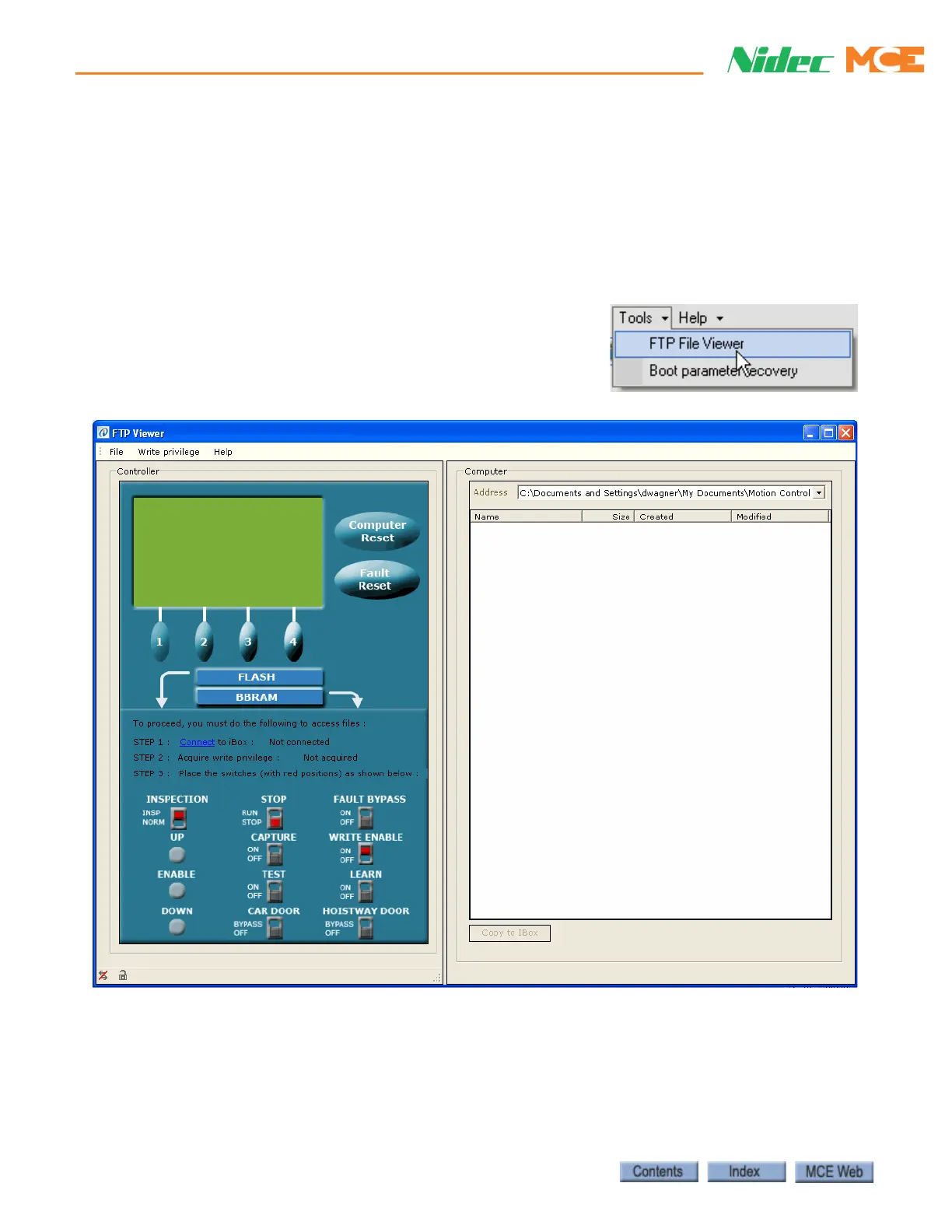 example, the Controller’s Event Log file could be copied from the iBox to the iView PC and then