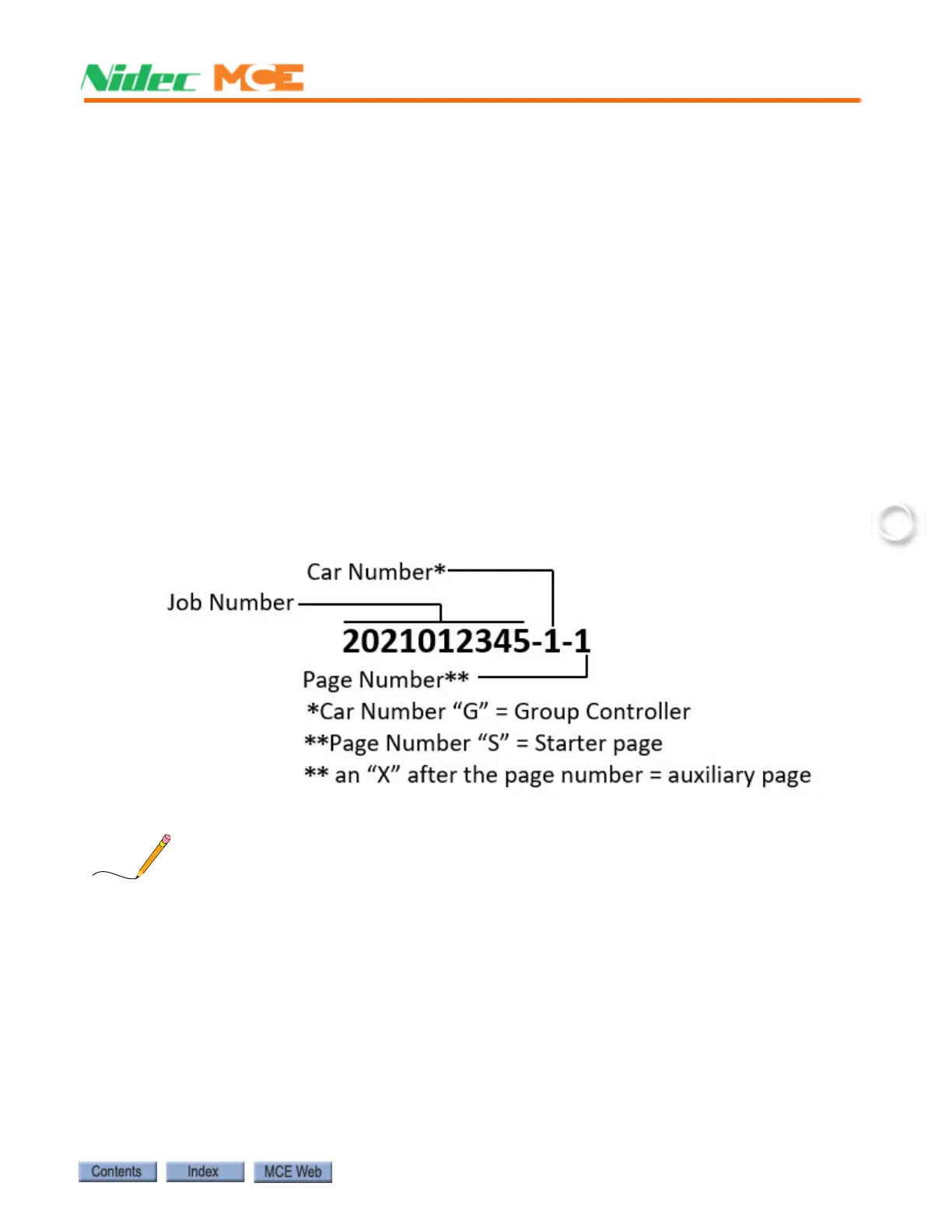 prised of the job number, car number and page number (see example). In this manual the draw-