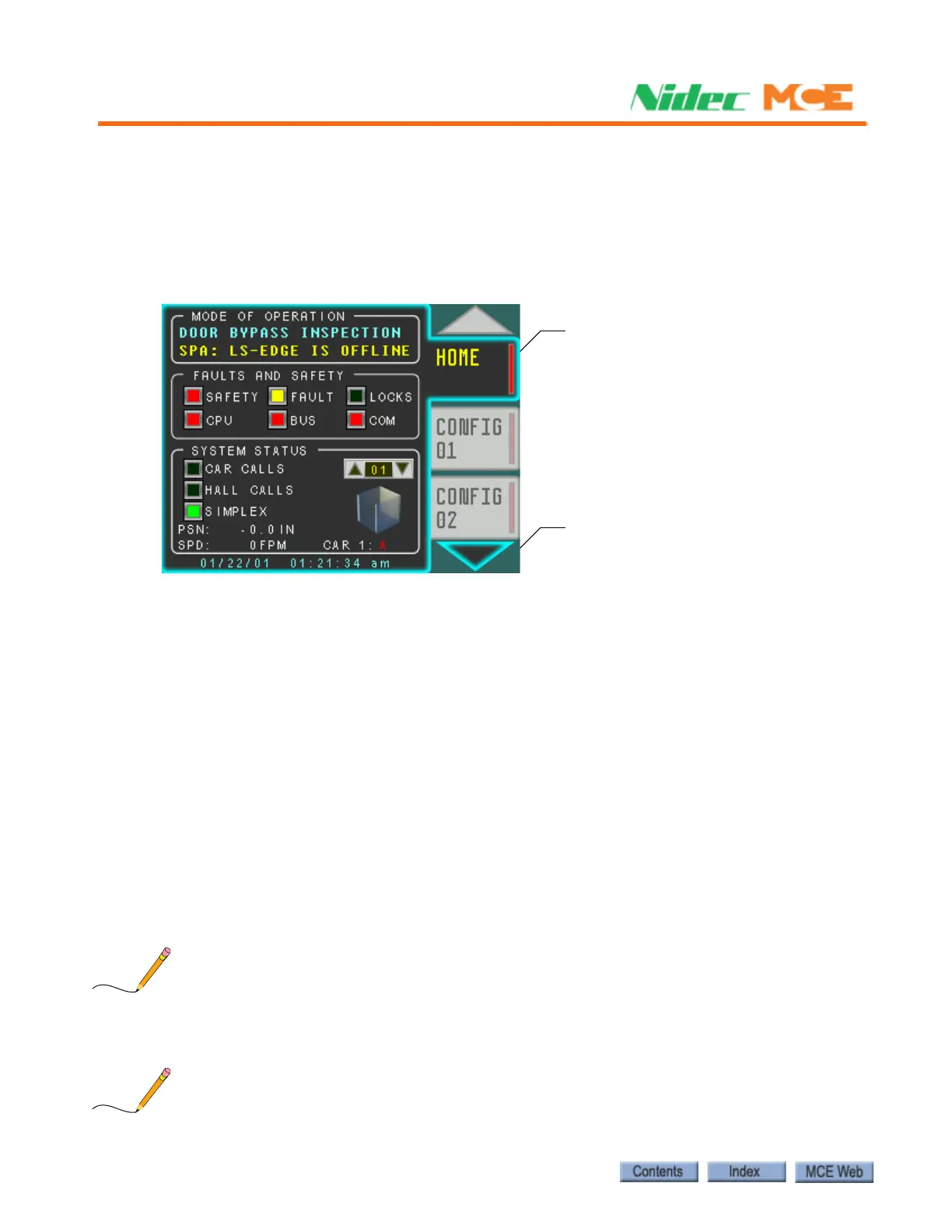 control, and diagnostic screens are available. Up and Down arrows scroll through the tabs. To