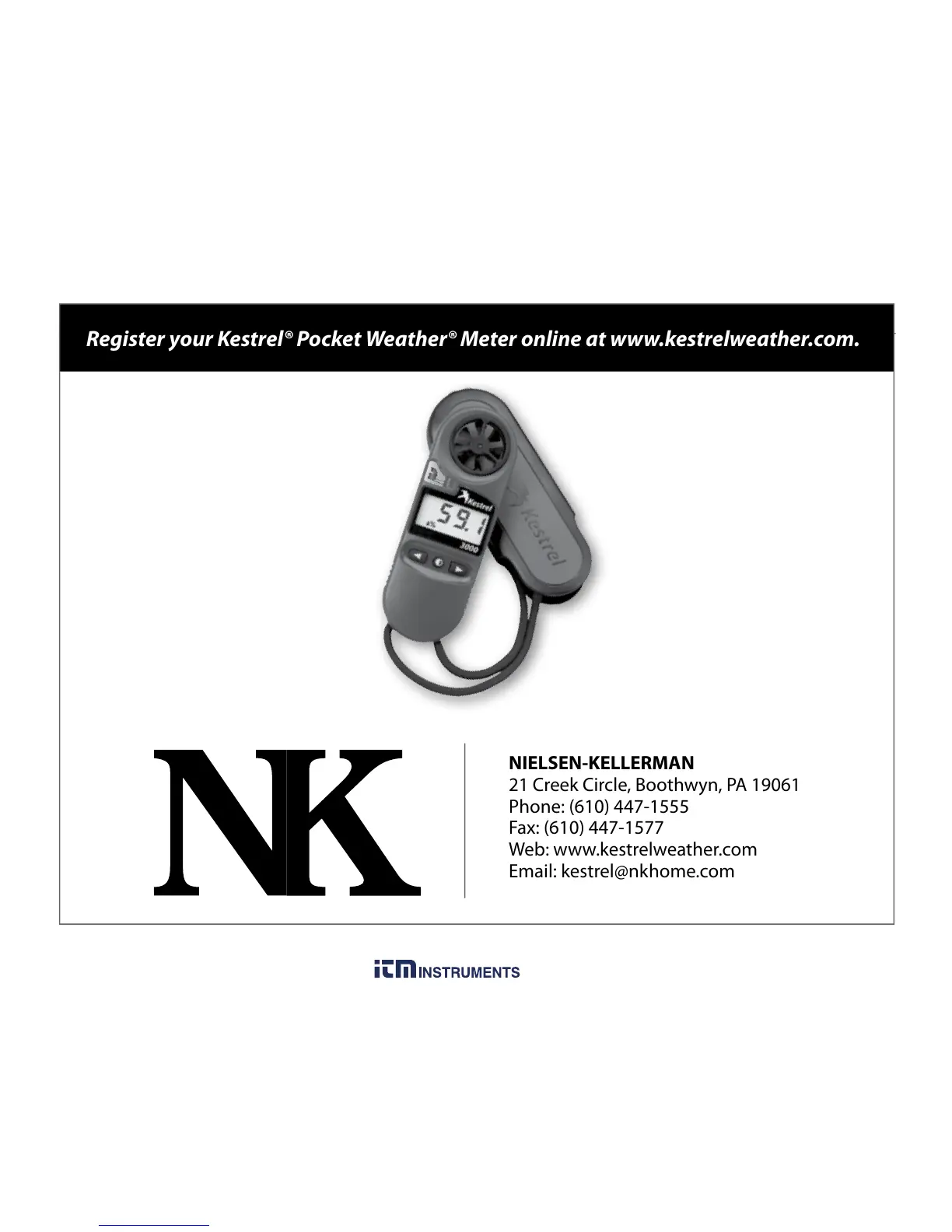 Register your Kestrel® Pocket Weather® Meter online at www.kestrelweather.com.