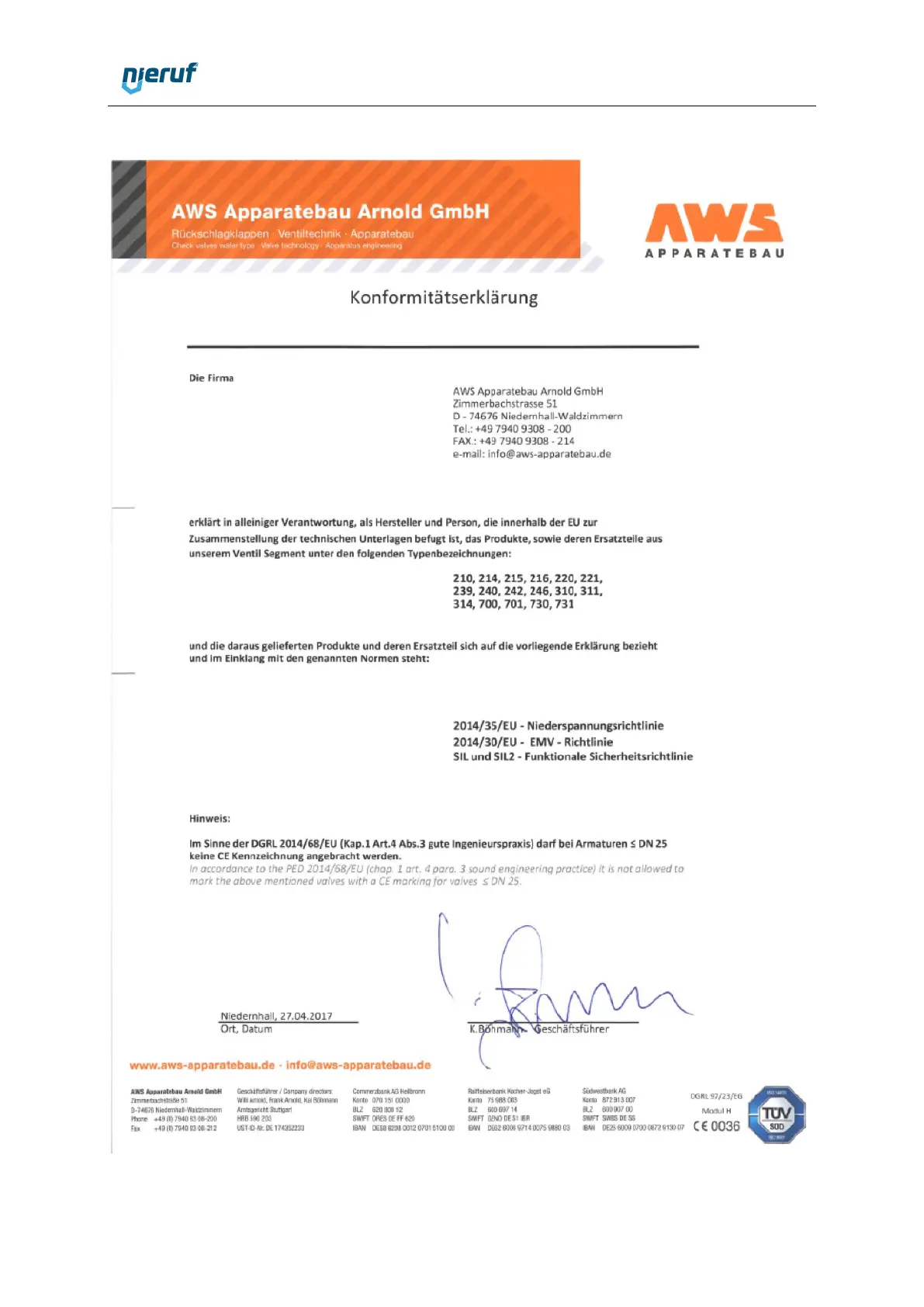 NieRuf EV01 - Declaration of Conformity