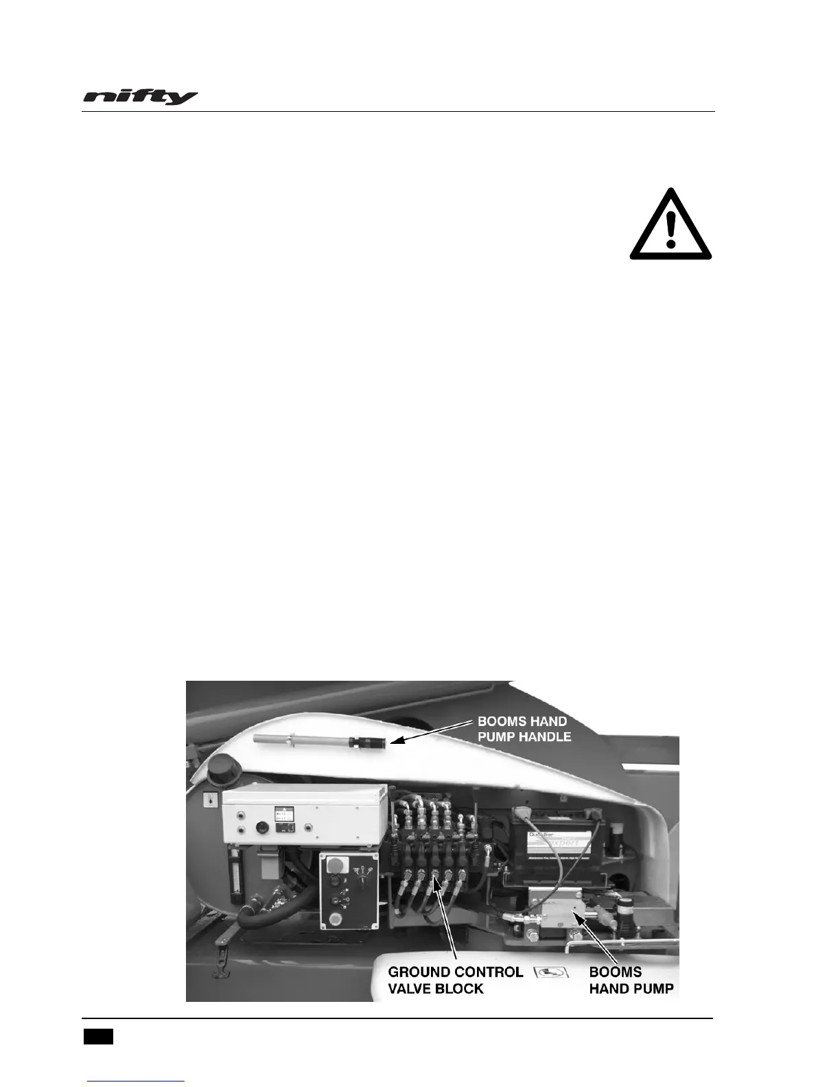 If all machine power is lost, the Manual Hand pump can be used to provide the hydraulic power to