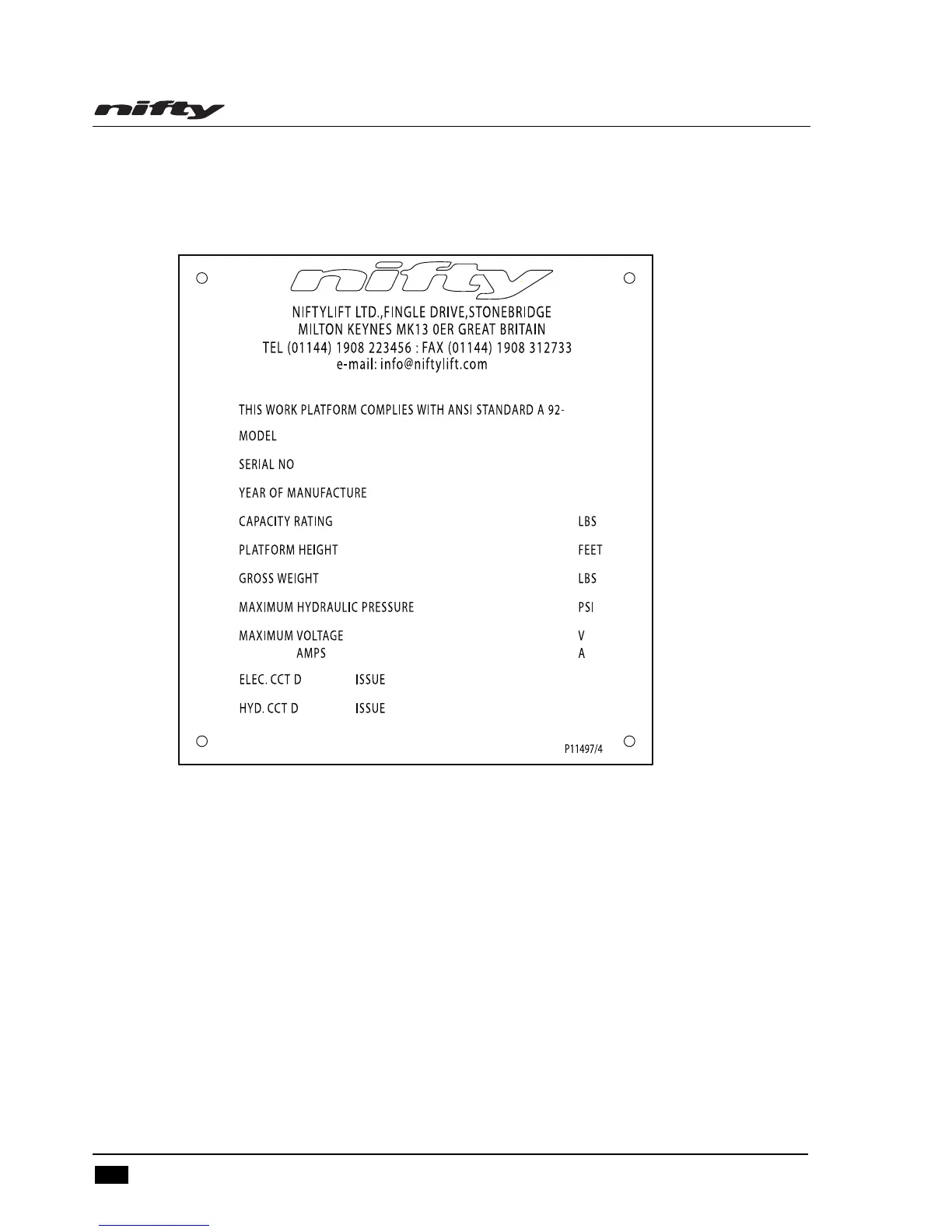 manufacture on every Niftylift. Please ensure all sections have been stamped and are