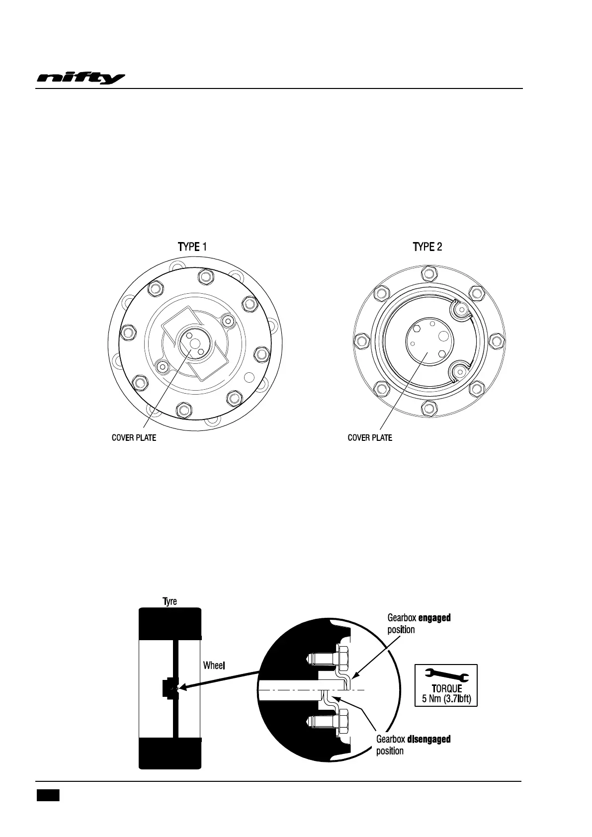 located on the front and rear wheel hubs must be disengaged as follows;