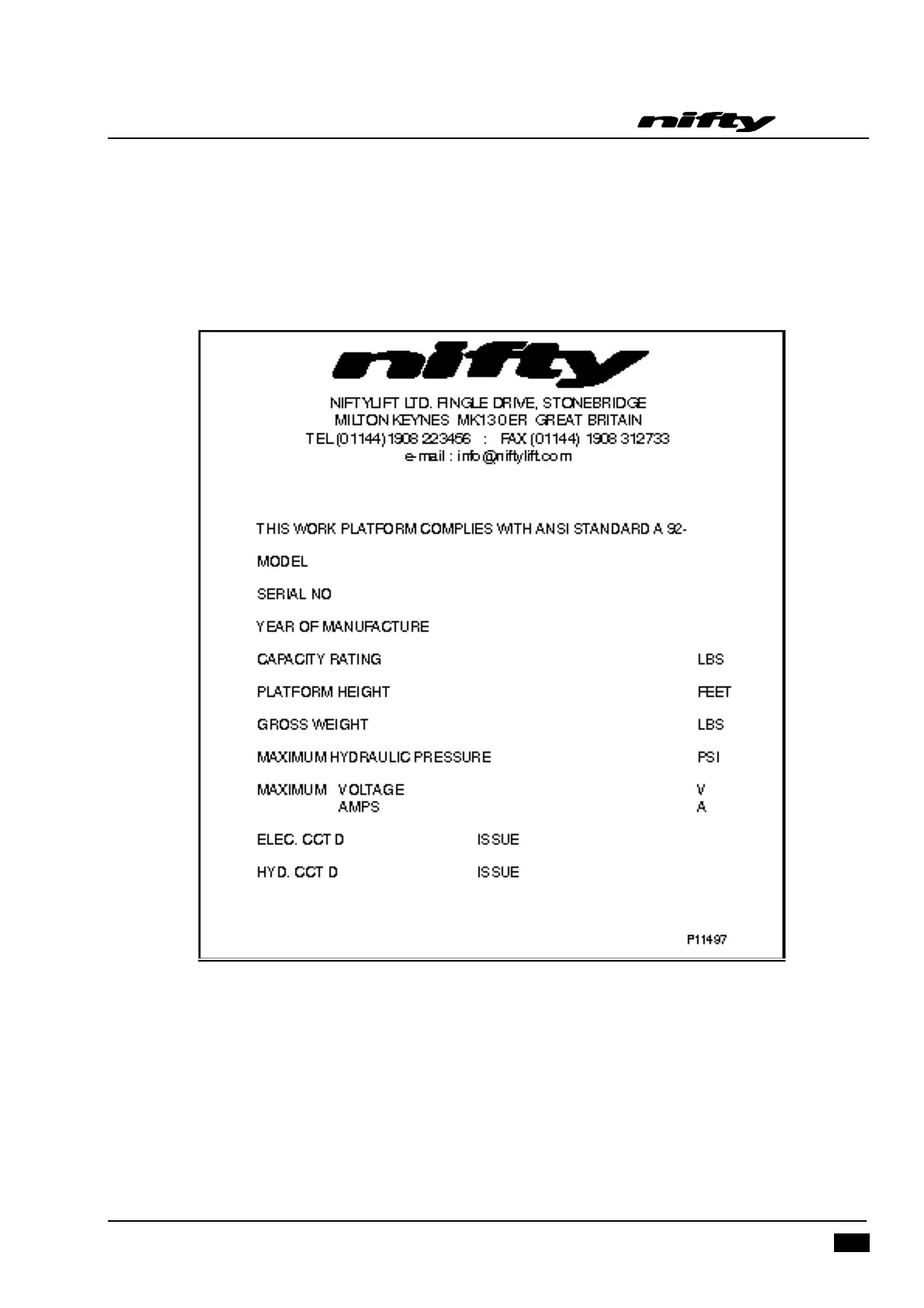 manufacture on every Niftylift. Please ensure all sections have been stamped and are legible.