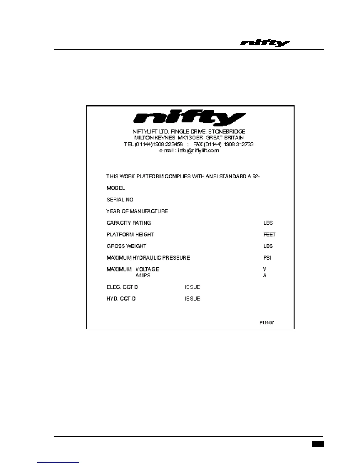 manufacture on every Niftylift. Please ensure all sections have been stamped and are