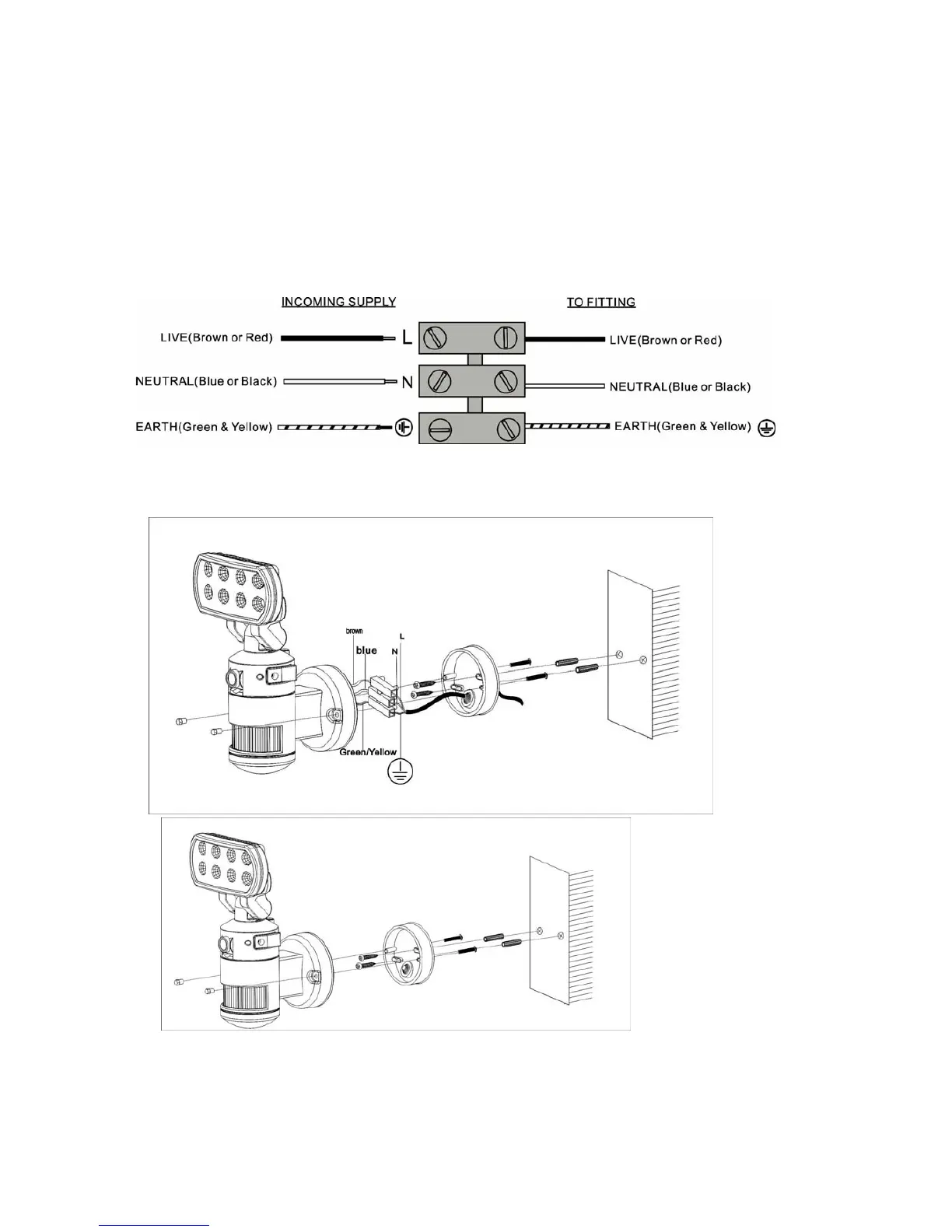 4. Make sure the polarity is correct. Double check the connections after wiring. Errors may damage the