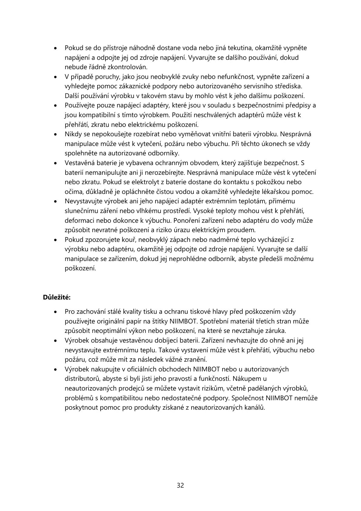 • Výrobek nakupujte v oficiálních obchodech NIIMBOT nebo u autorizovaných
