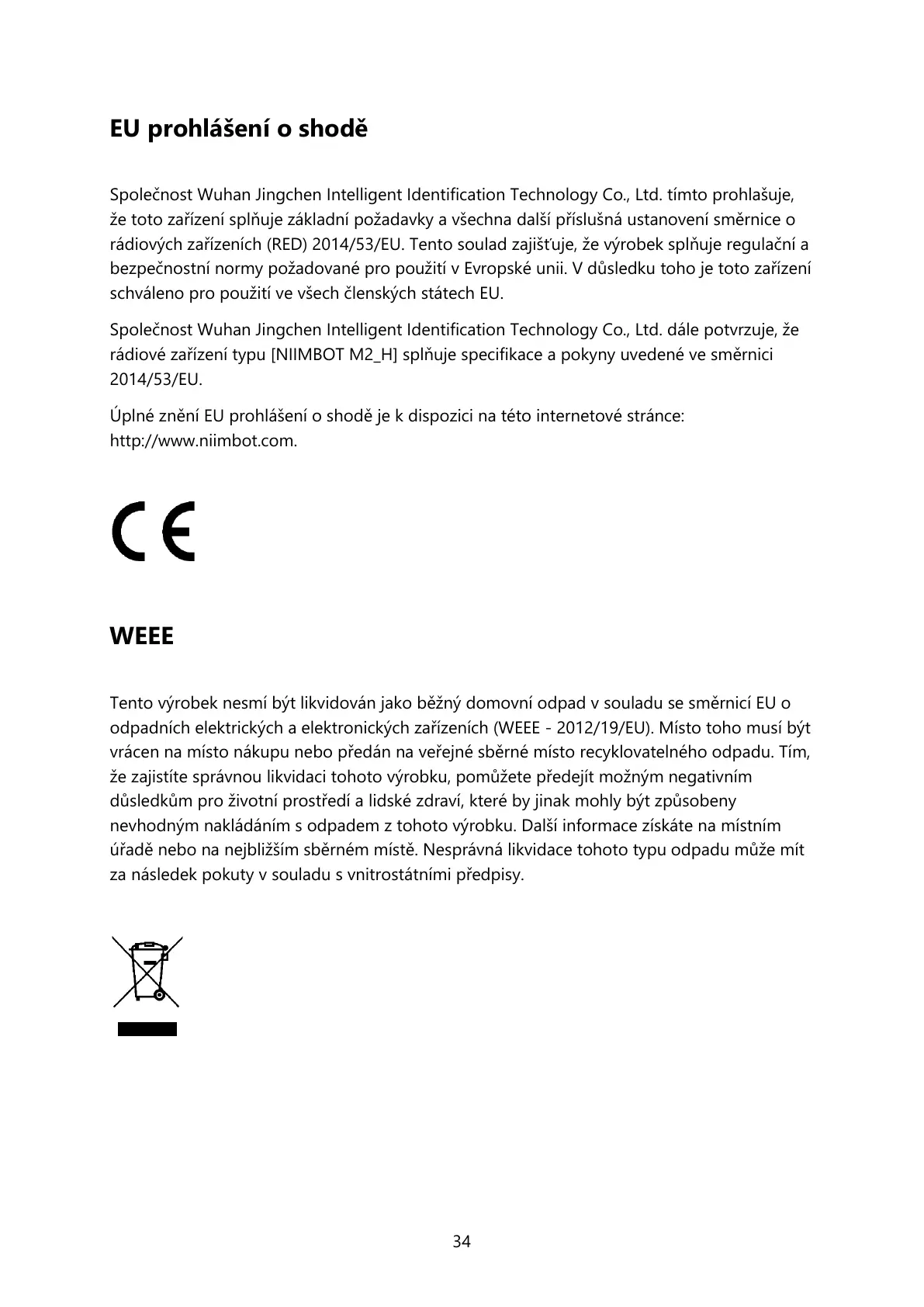 rádiové zařízení typu [NIIMBOT M2_H] splňuje specifikace a pokyny uvedené ve směrnici