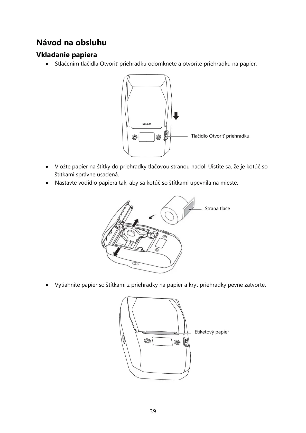 • Vytiahnite papier so štítkami z priehradky na papier a kryt priehradky pevne zatvorte.