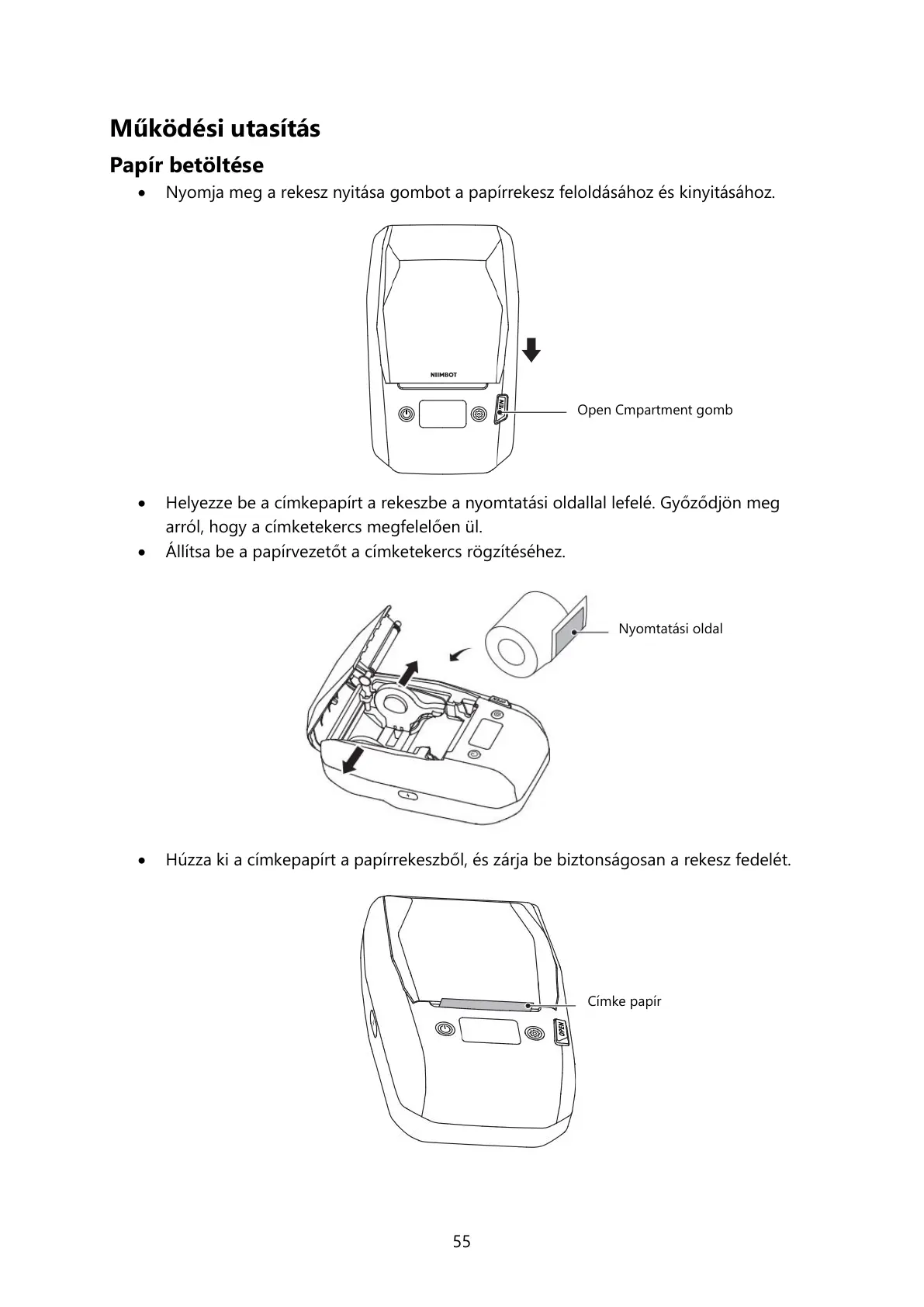 • Húzza ki a címkepapírt a papírrekeszből, és zárja be biztonságosan a rekesz fedelét.