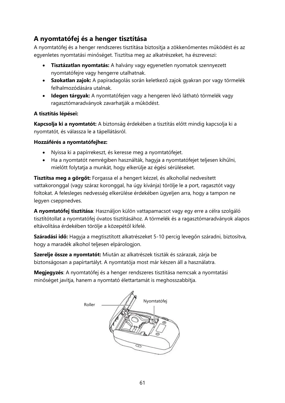 Megjegyzés: A nyomtatófej és a henger rendszeres tisztítása nemcsak a nyomtatási
