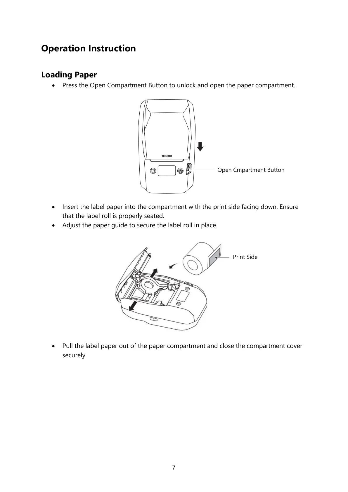 Insert the label paper into the compartment with the print side facing down. Ensure