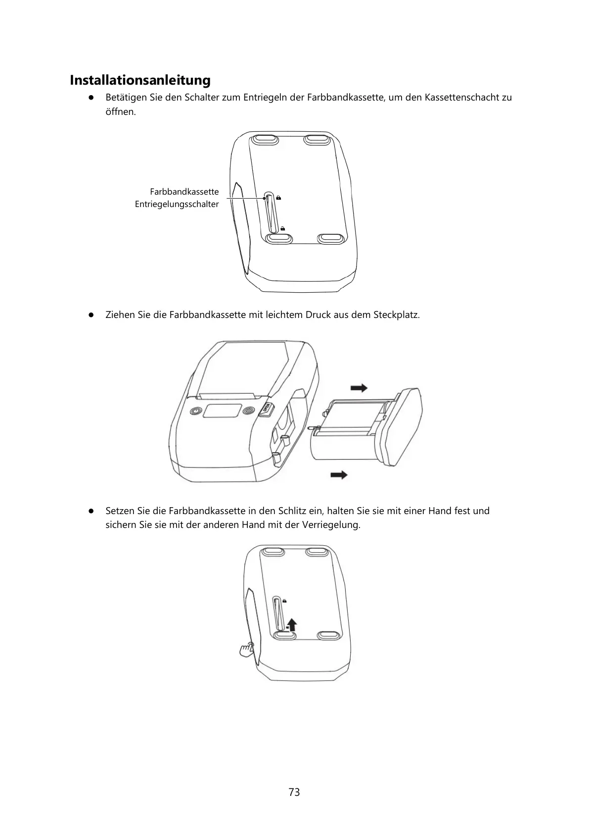 Setzen Sie die Farbbandkassette in den Schlitz ein, halten Sie sie mit einer Hand fest und