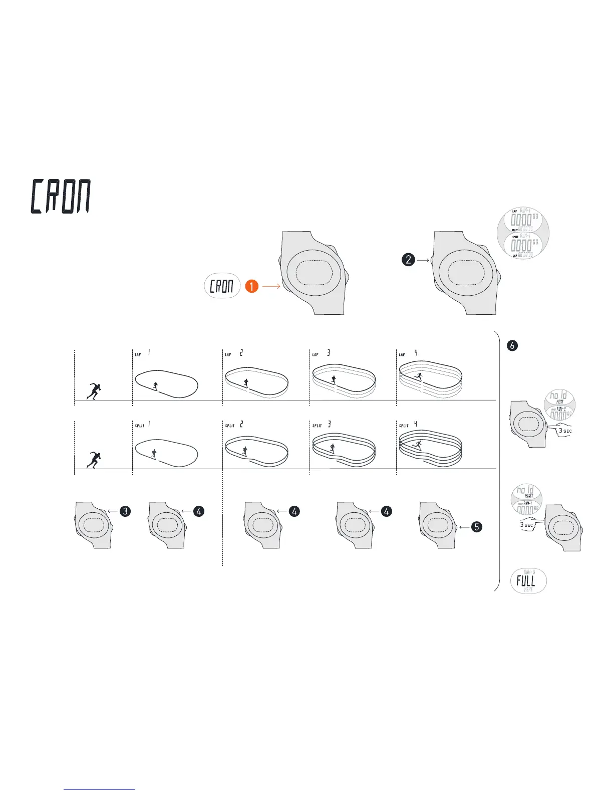 Nike TRIAX 50 - CRONOGRAPH Mode; Choose Display: Lap; Split; Save or Clear Run