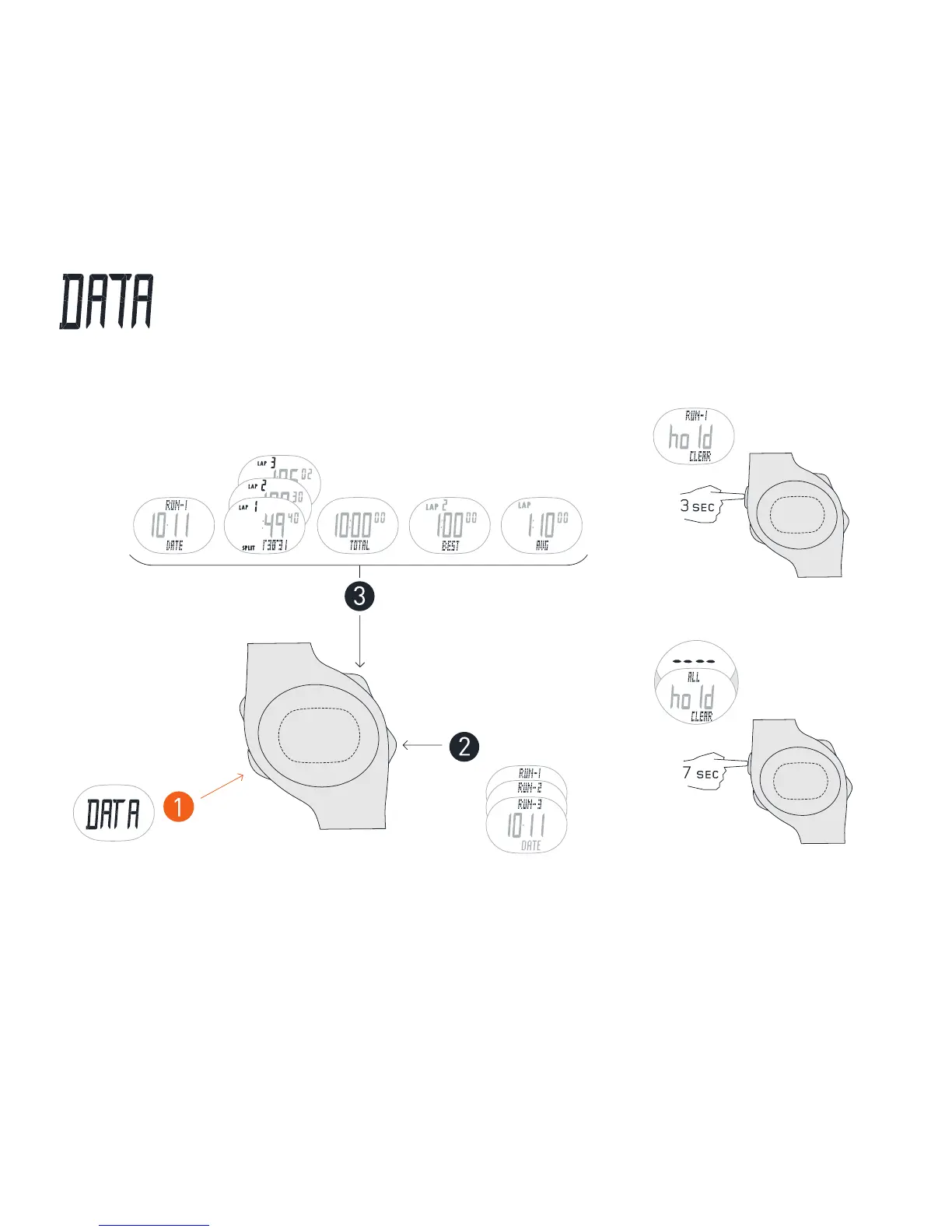 Nike TRIAX 50 - DATA Mode; View Lap;Split;Run Time; Choose A Run; Clear Run Data