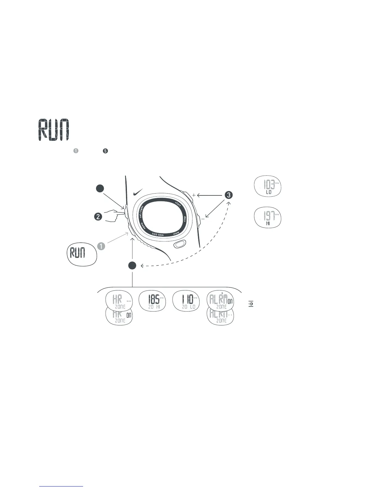 Nike Triax C5 - RUN Setting Heart Rate Zone; Out-of-Zone Indicators; Zone Alarm ON Indicator