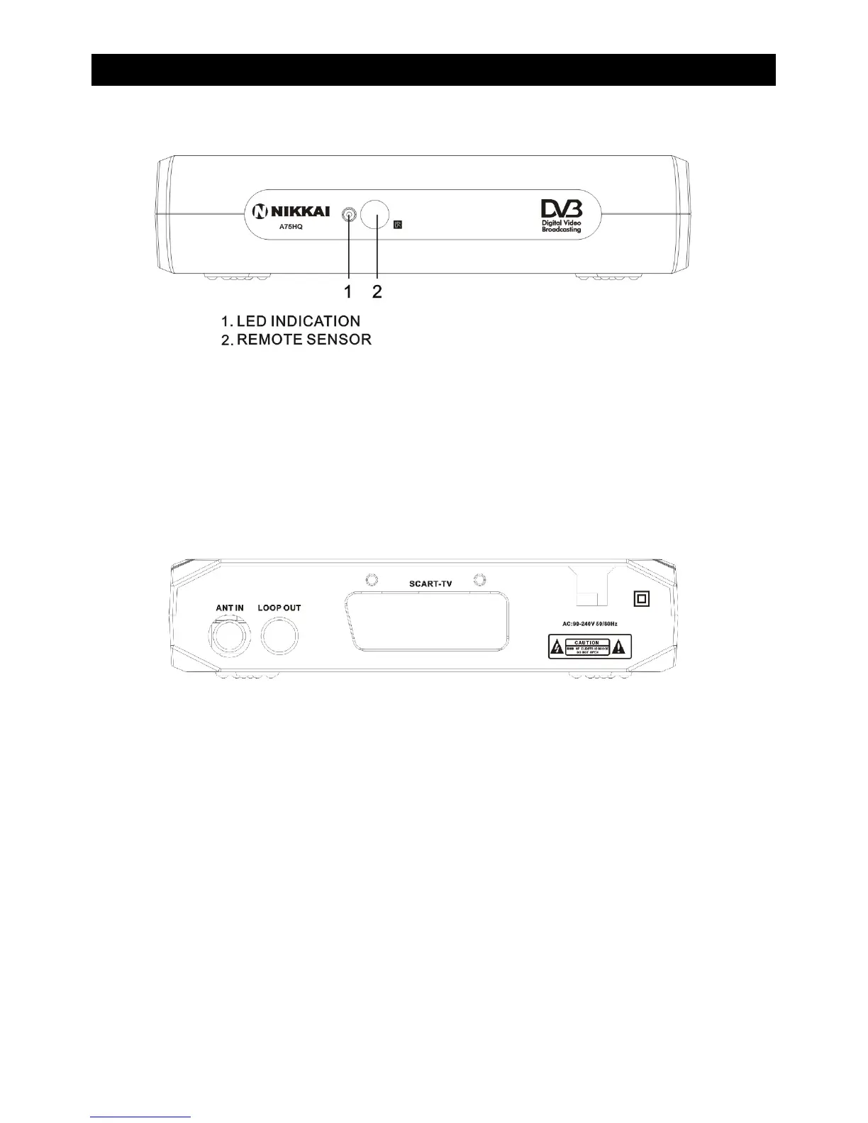 Nikkai A75HQ - Front and Rear Panel Features; LED Indicator and Remote Sensor