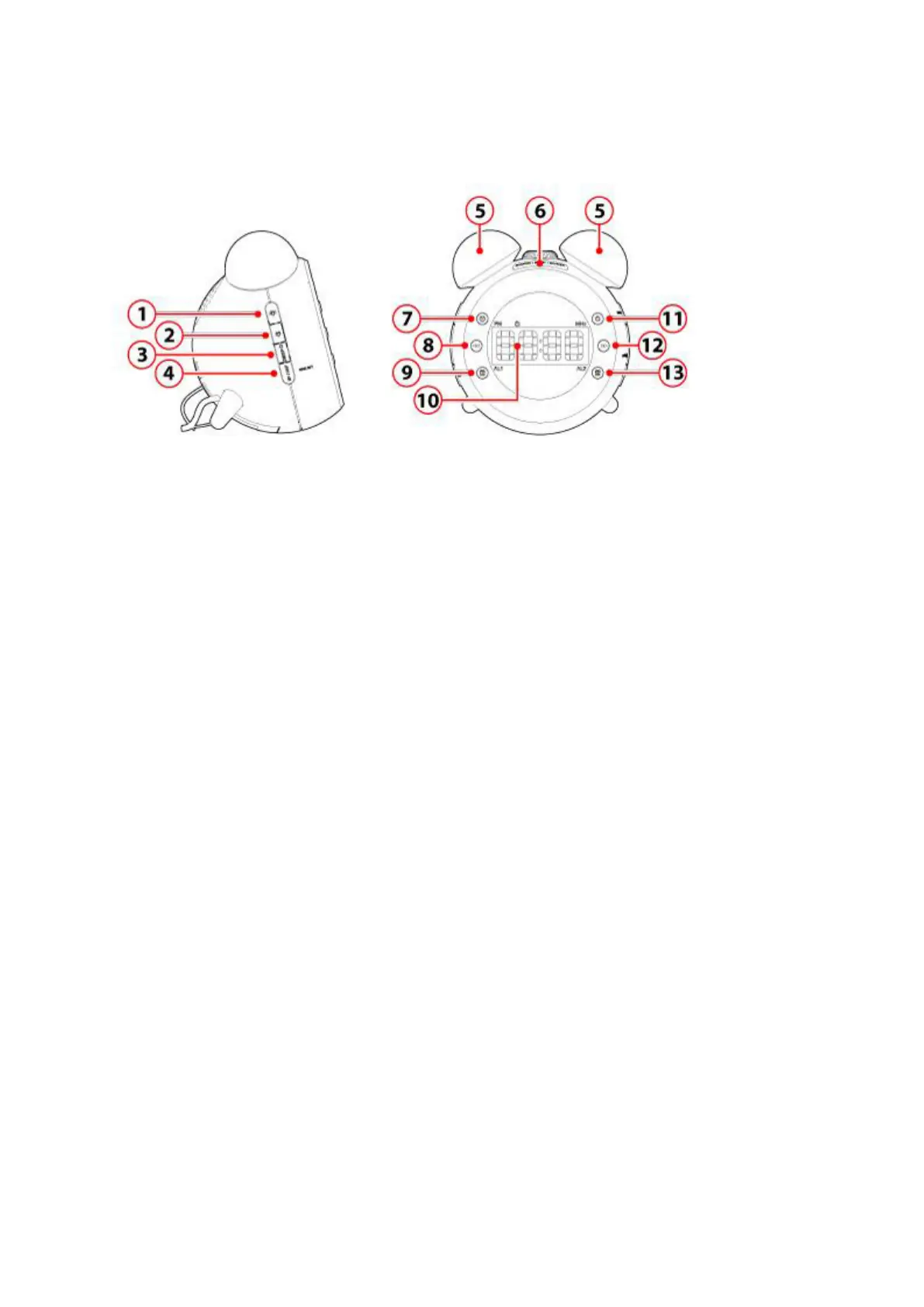 b. To snooze the alarm, press SNOOZE/SLEEP/DIMMER (6). The alarm sounds again after the snooze