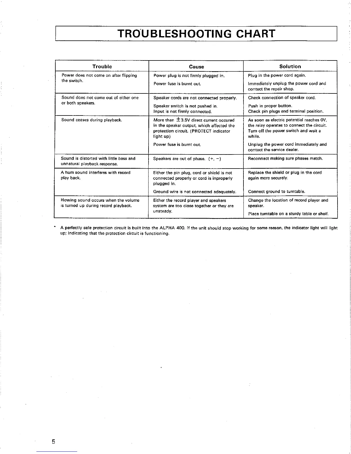 Nikko Alpha 400 - Troubleshooting Chart
