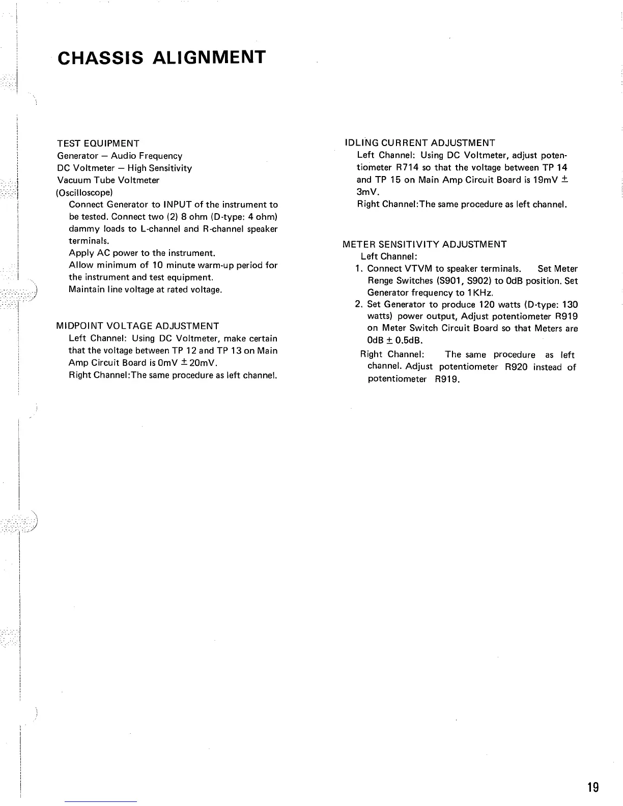 Nikko Alpha II - Chassis Alignment; Test Equipment; Midpoint Voltage Adjustment; Idling Current Adjustment