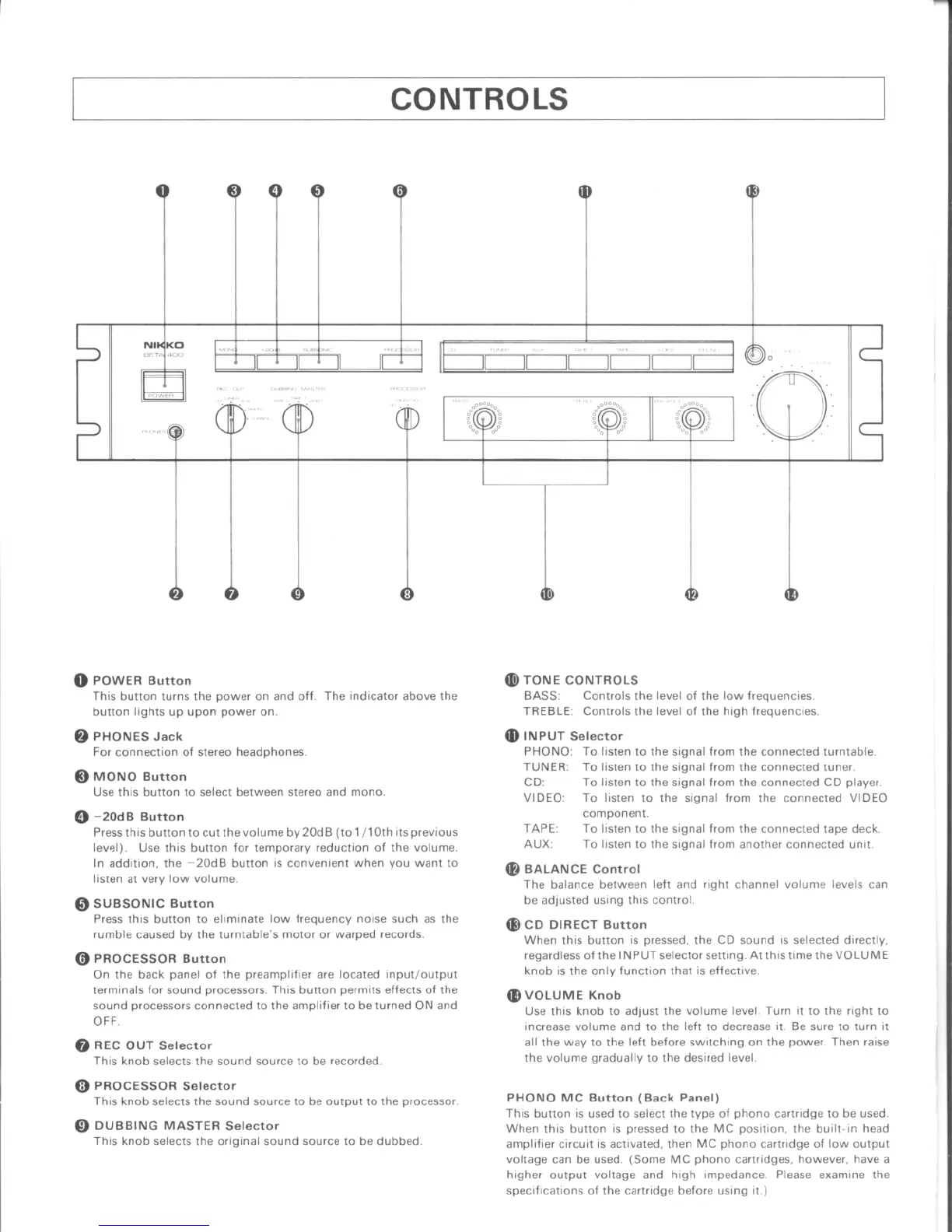 Nikko BETA400 - Controls