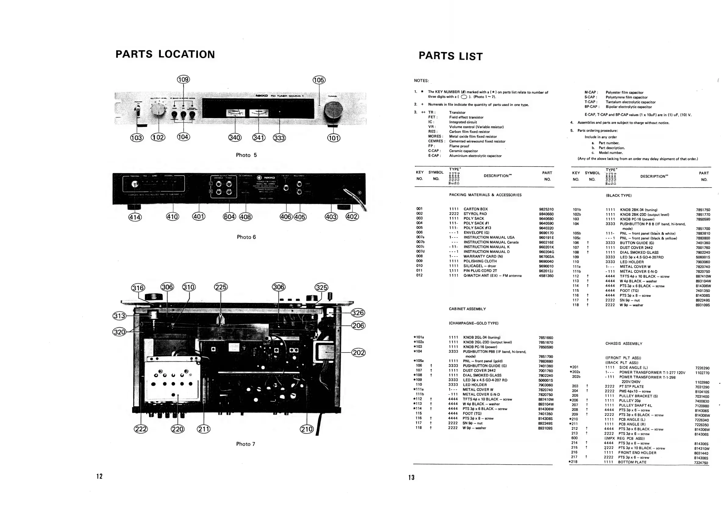 Nikko Gamma I - Parts Location