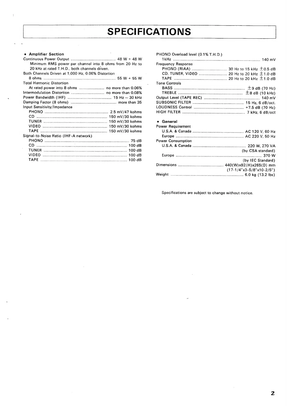 SPECIFICATIONS
