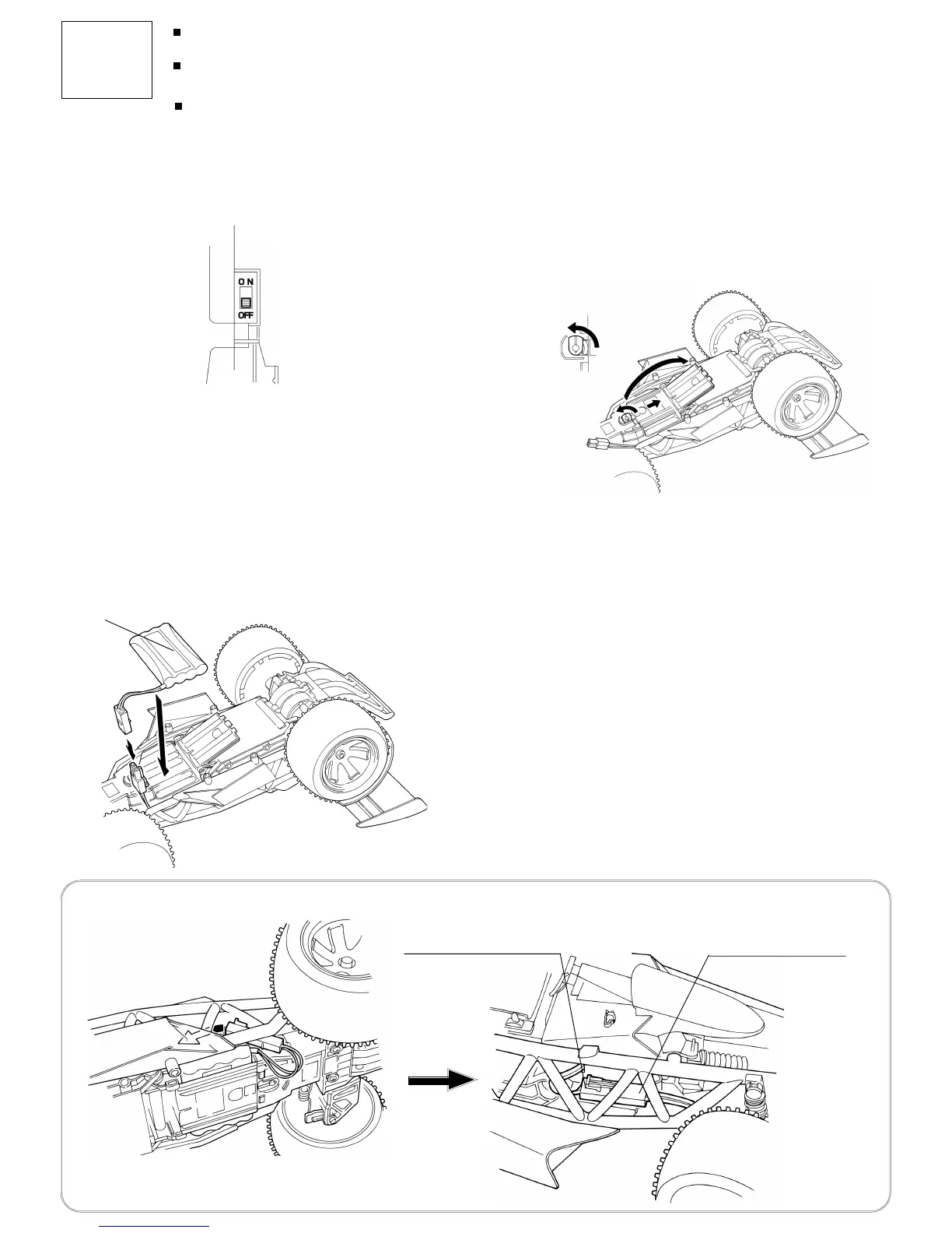1. Slide the ON/OFF switch under the vehicle to OFF.