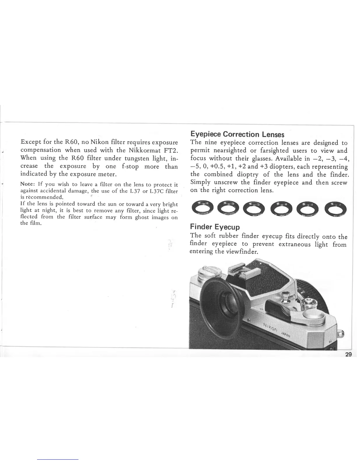 NIKKORMAT FT2 - Eyepiece Correction Lenses; Finder Eyecup