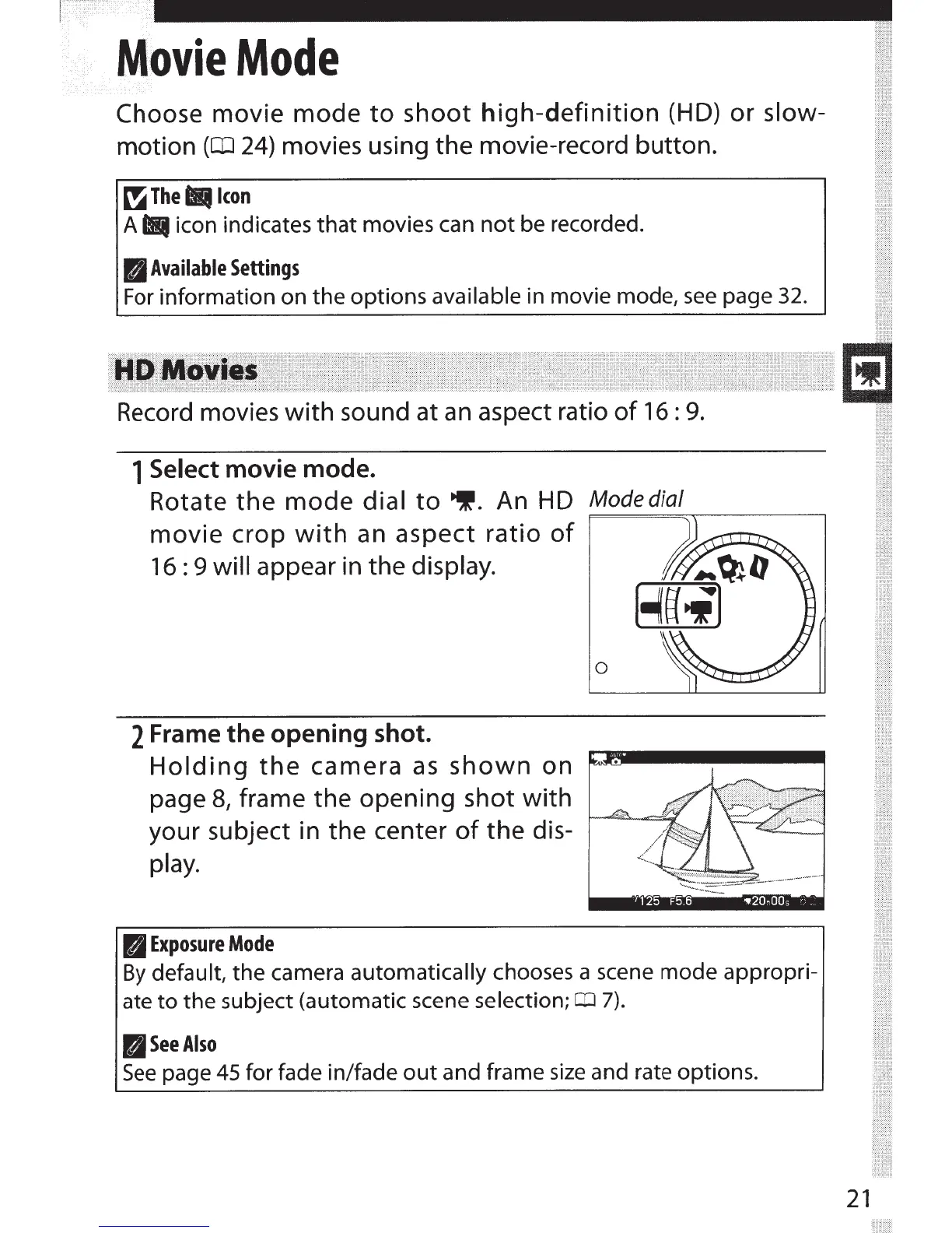 Nikon 1 J1 - Movie Mode Operations; HD Movies Recording