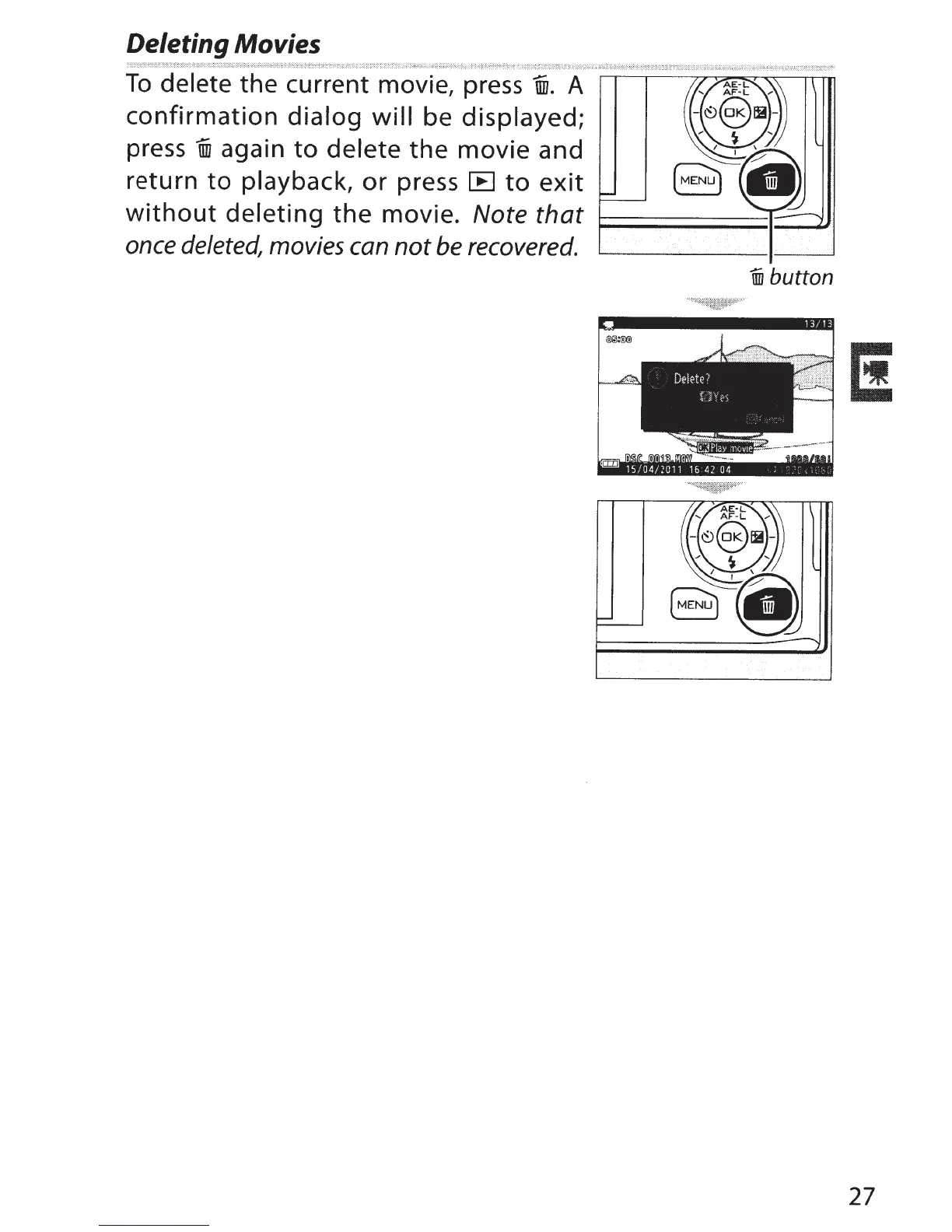 delete the current movie, press