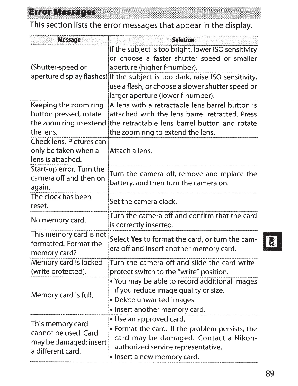 error messages