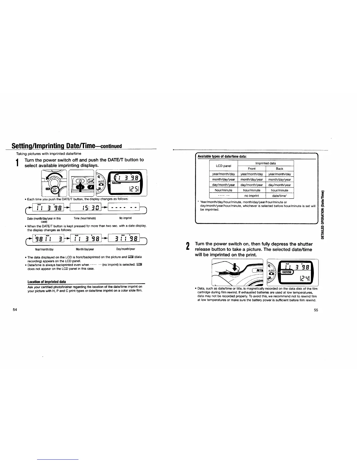 Nikon 2170749 - Pronea S APS Camera - Detailed Camera Functions; Imprinting Date and Time on Prints